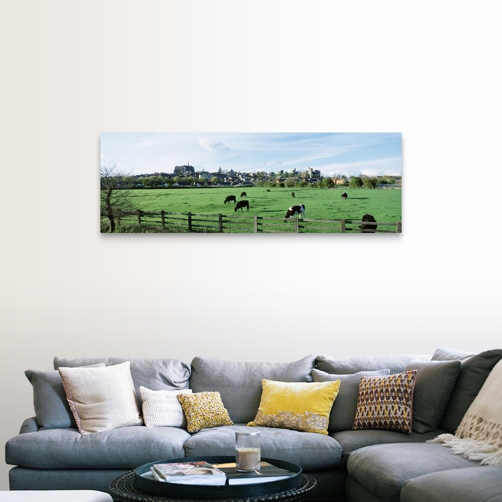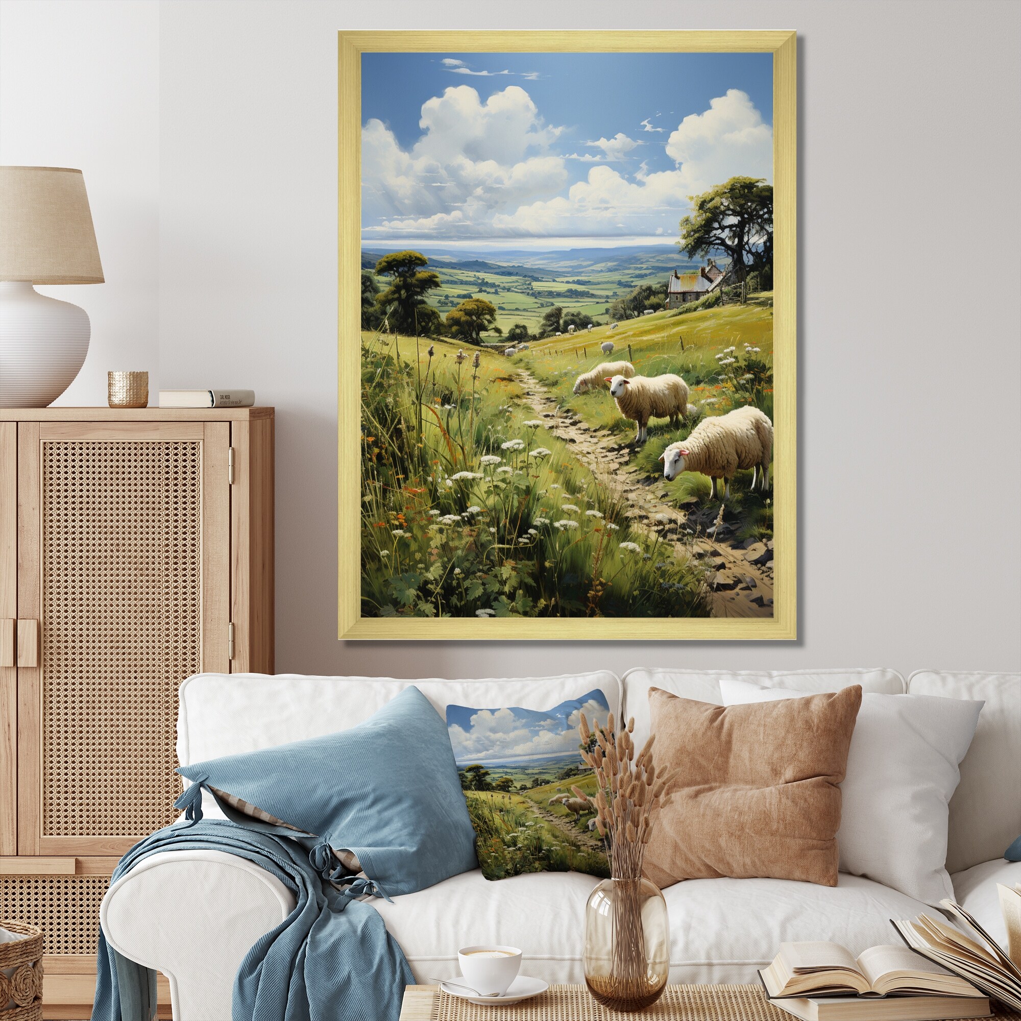 Designart "England Sheep Grazingengland Landscape I" England Framed Canvas Wall Art