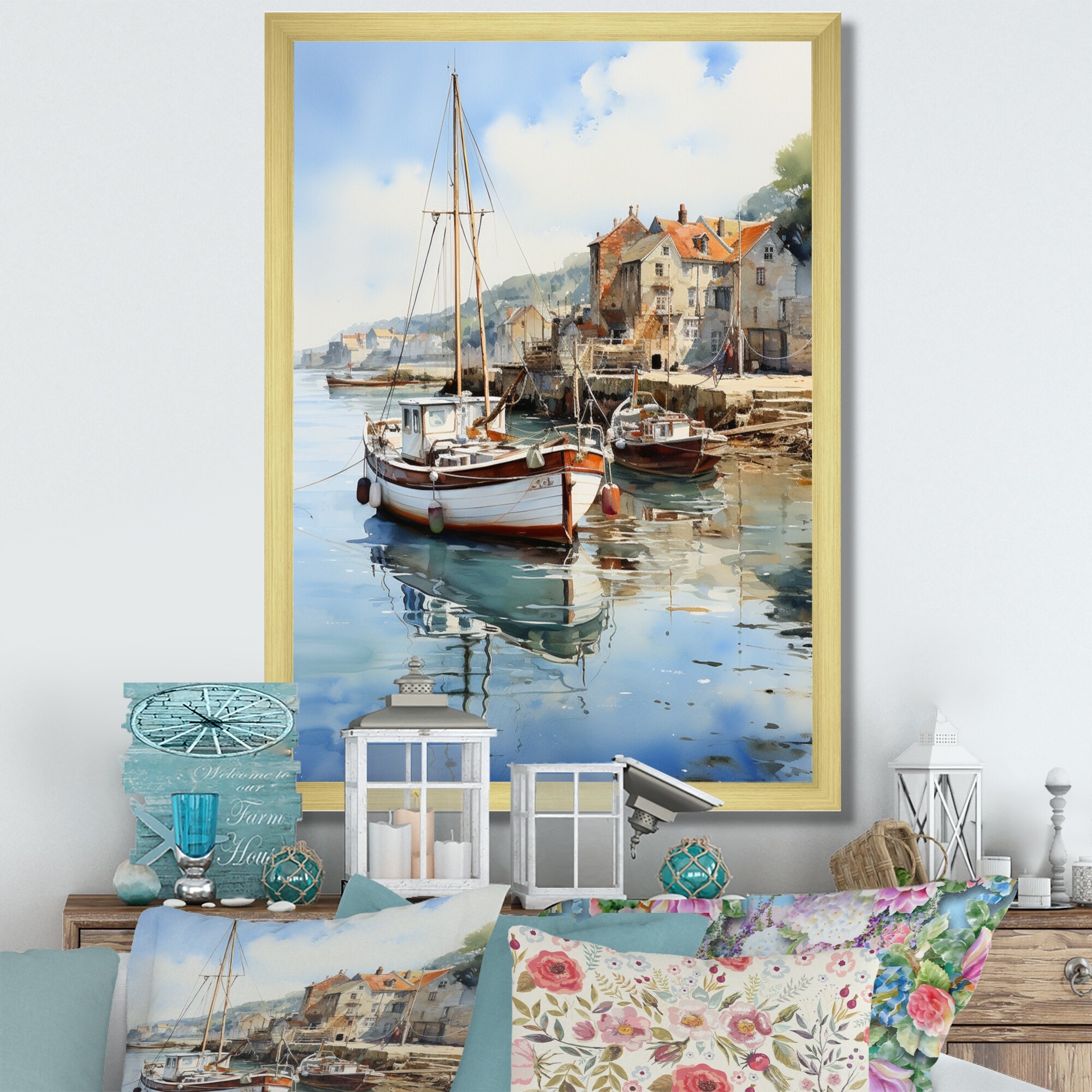 Designart "England Calm Harborengland Landscape" England Framed Wall Decor