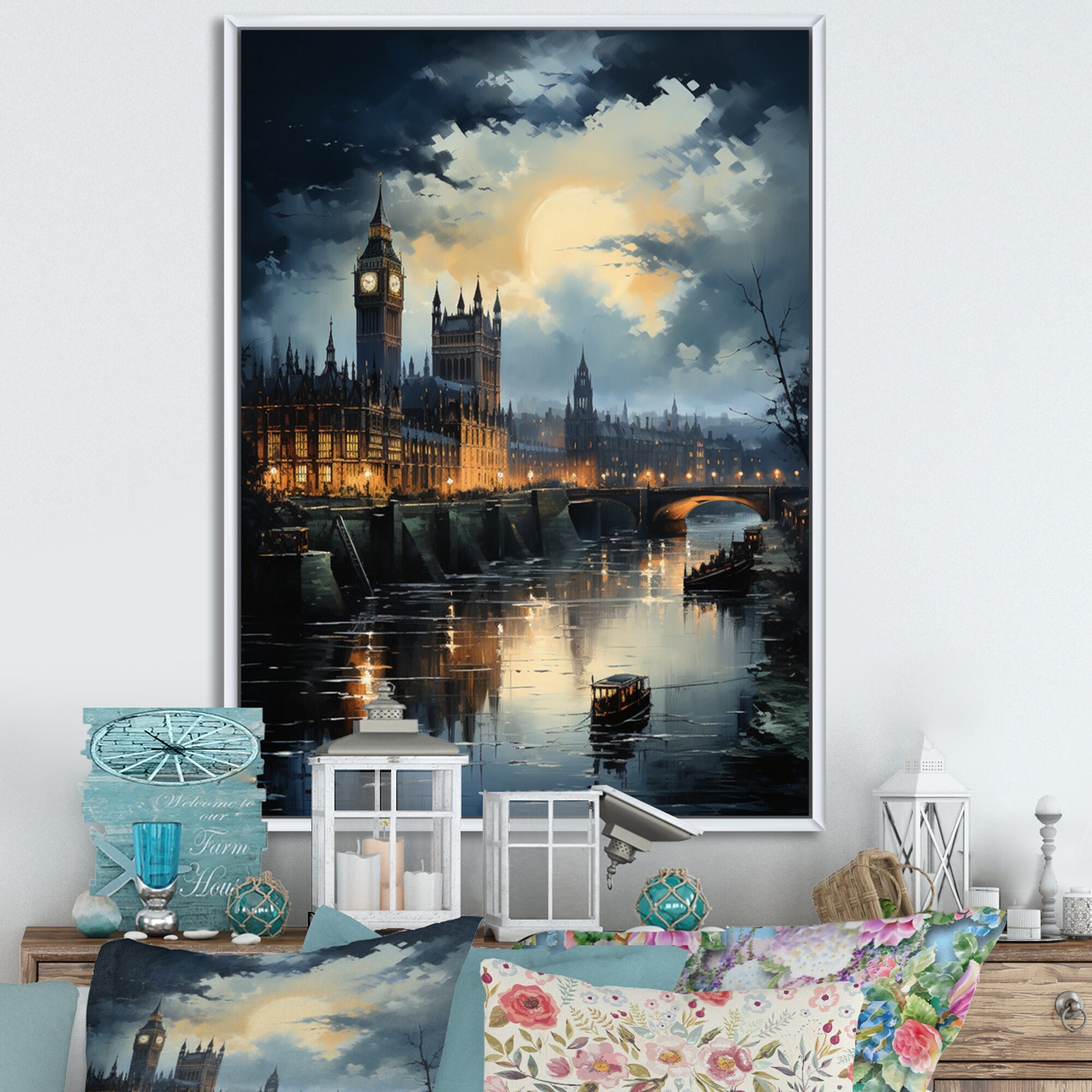 Designart "England City Skylineengland Landscape V" England Framed Canvas Wall Art