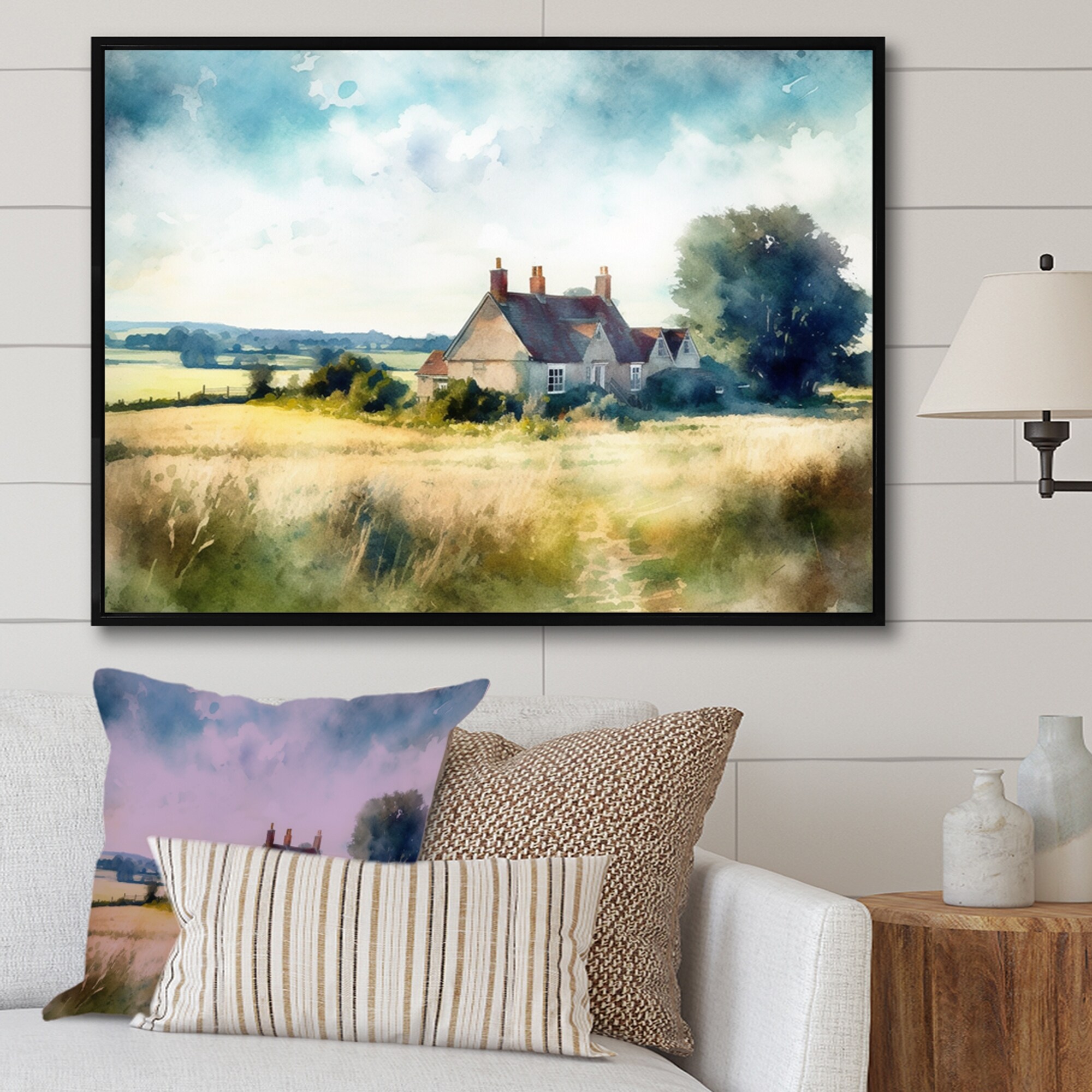 Designart "England Small Town Cottage I" Cottage Landscape Framed Canvas Prints