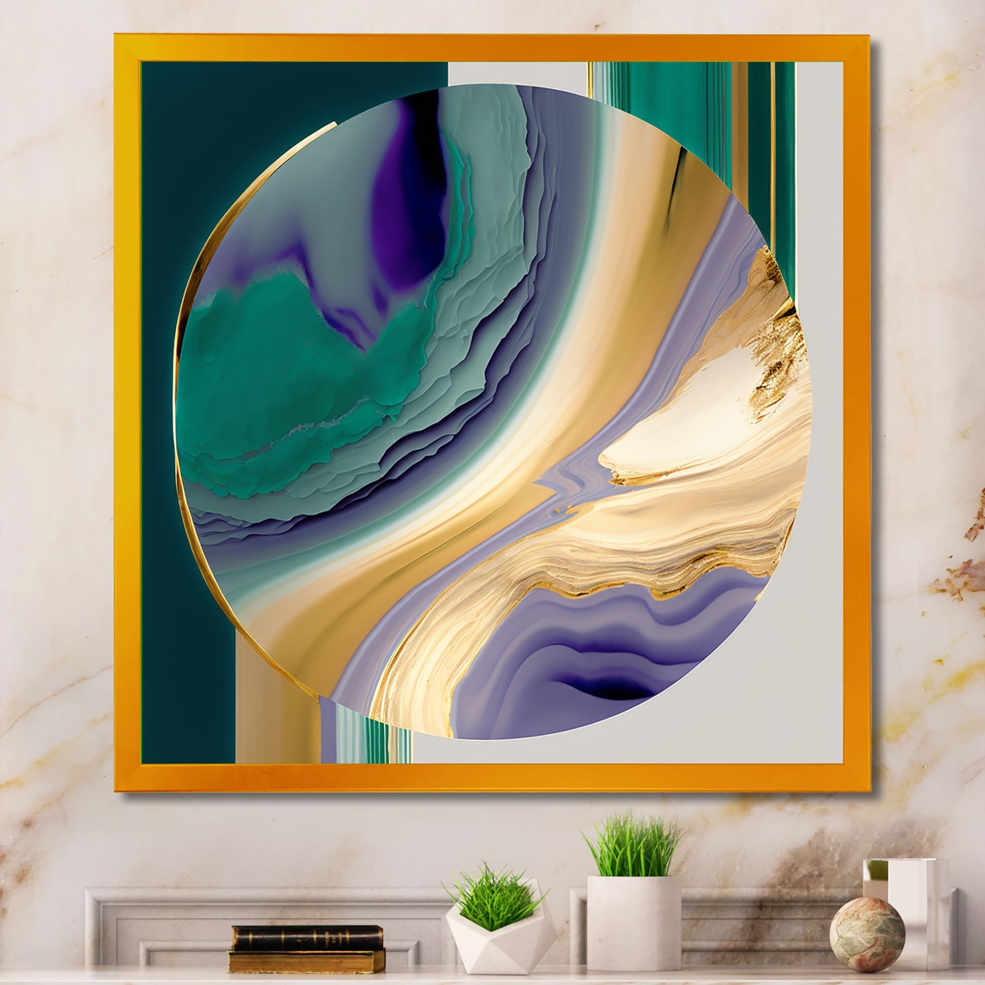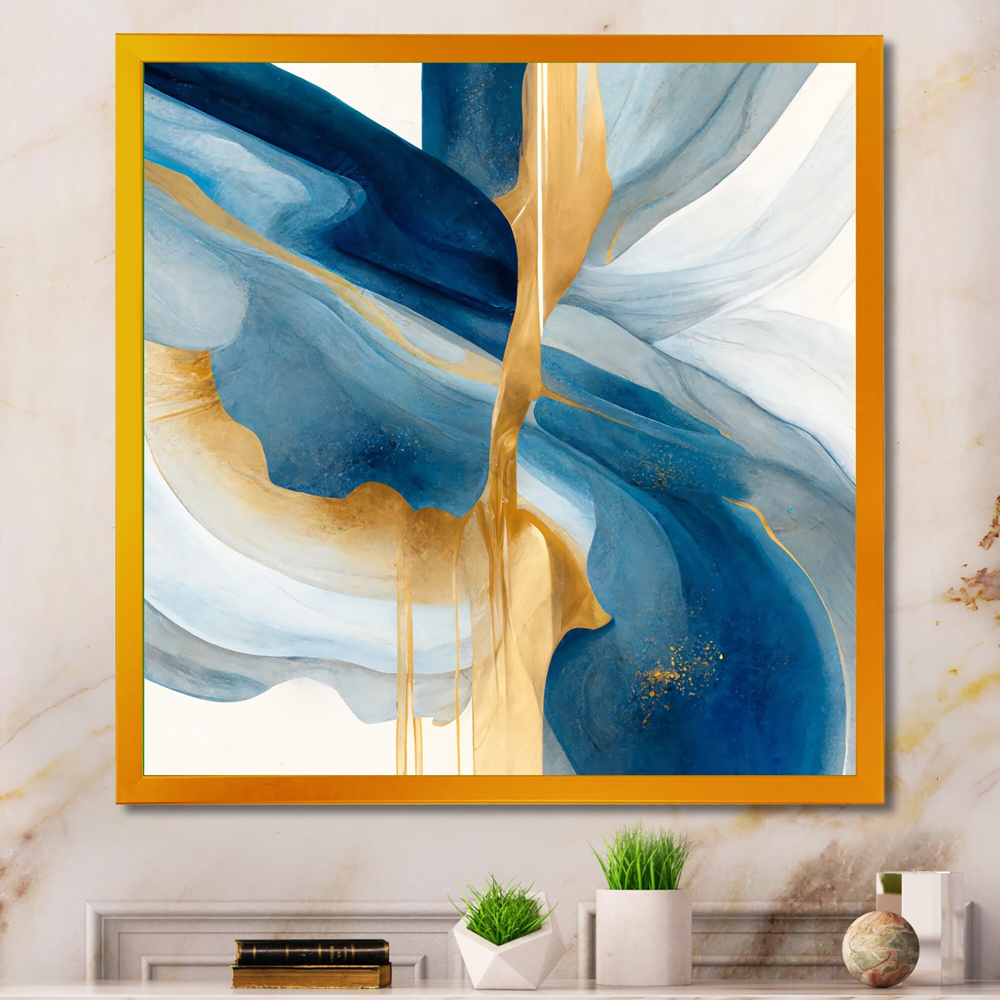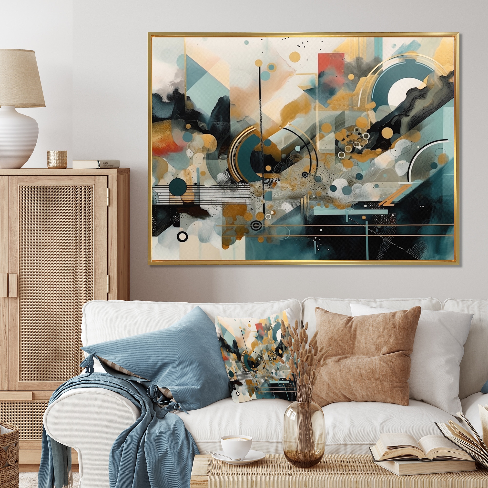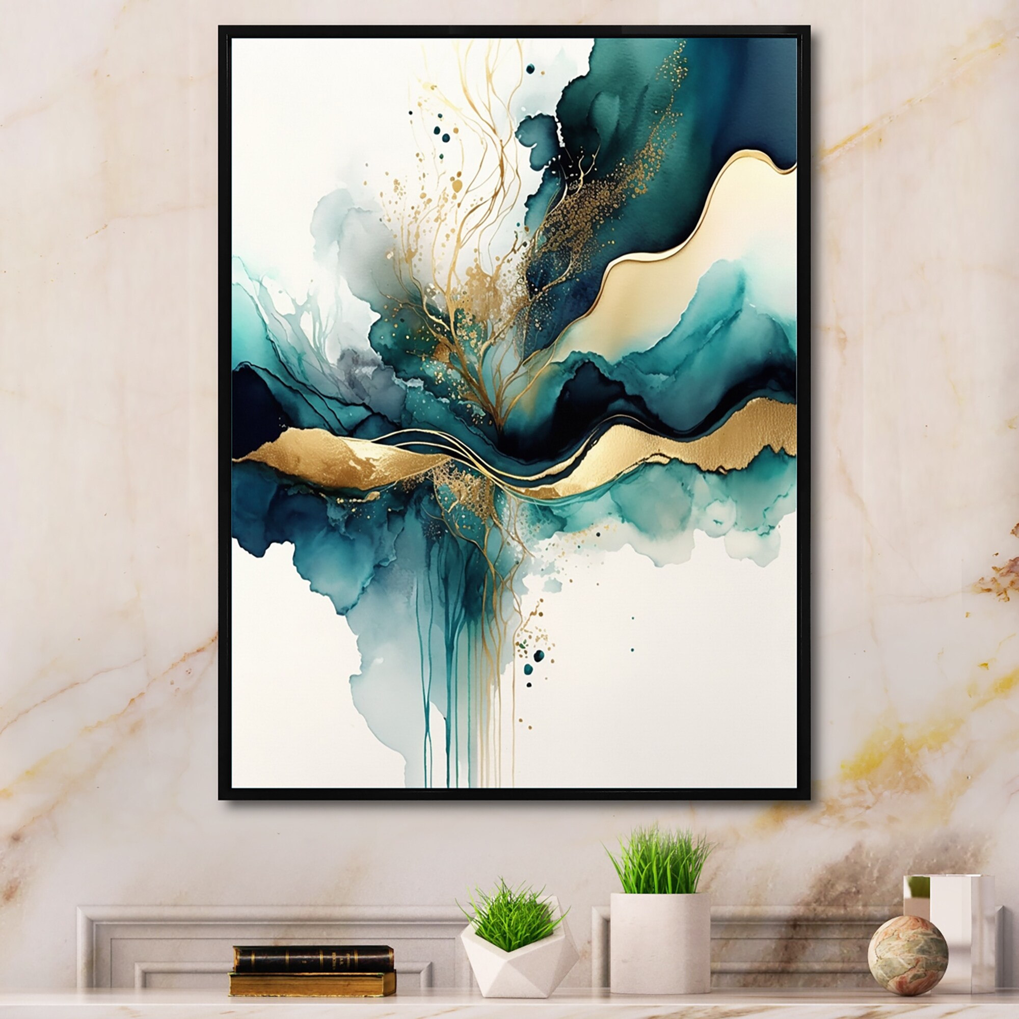 Designart "Teal And Gold Abstract Expression III" Modern Framed Canvas Art Print