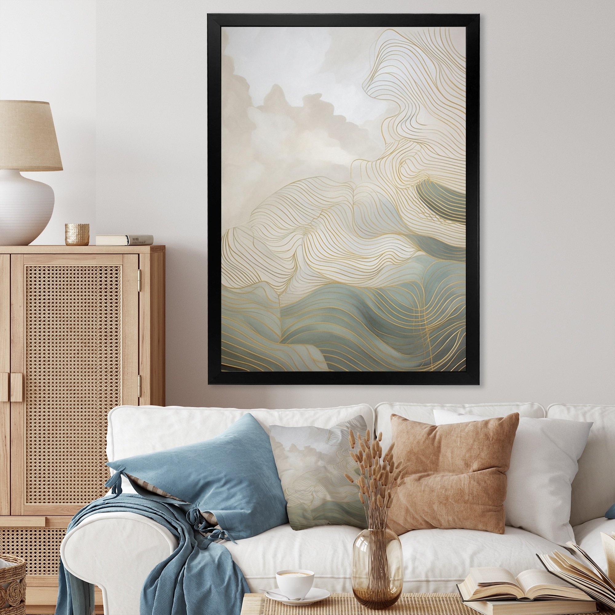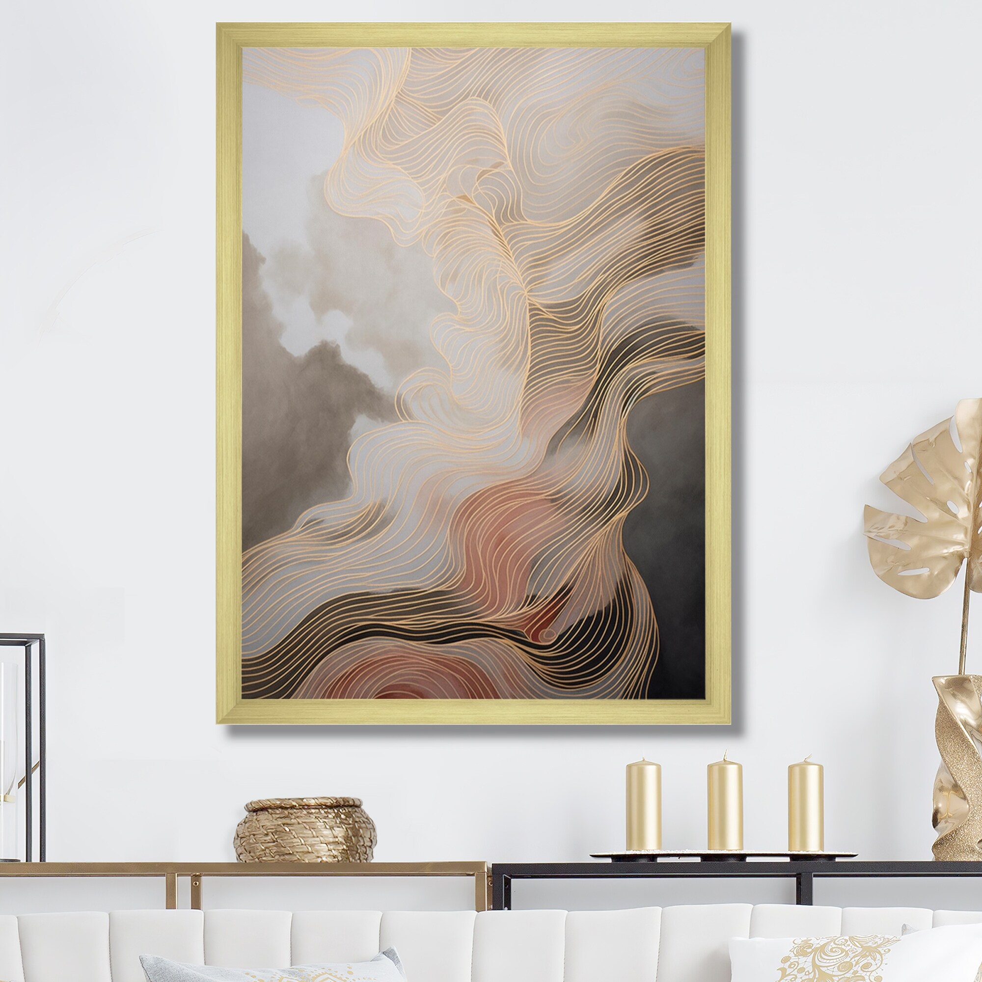 Designart "Gold And Grey Linear Expressions Iii" Minimalism Line Art Framed Wall Art for Living Room