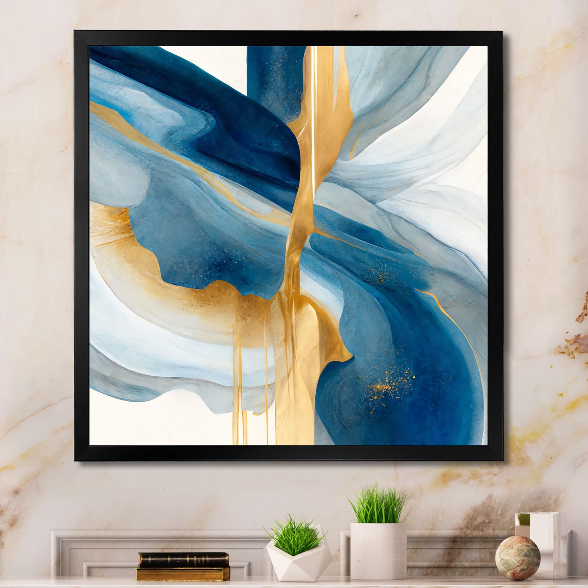 Designart "Gold And Black Marble Expression V" Abstract Marble Framed Wall Art for Living Room