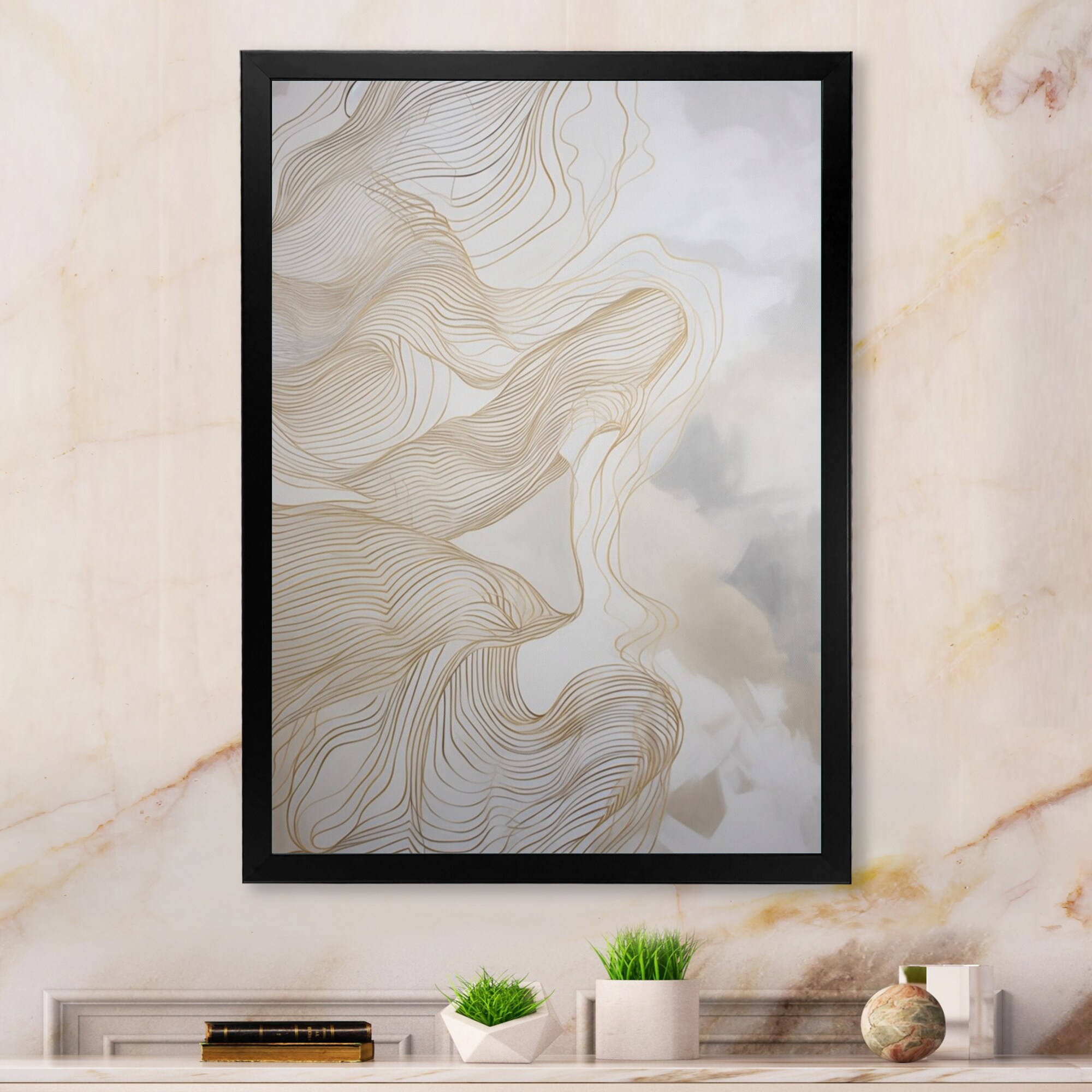 Designart "Gold And Grey Linear Expressions I" Minimalism Line Art Framed Wall Decor