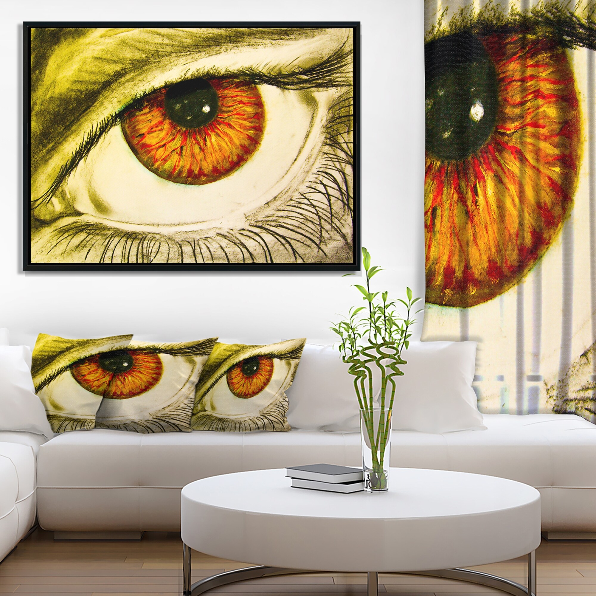 Designart "Eye with Orange Pupil" Abstract Framed Canvas Art Print