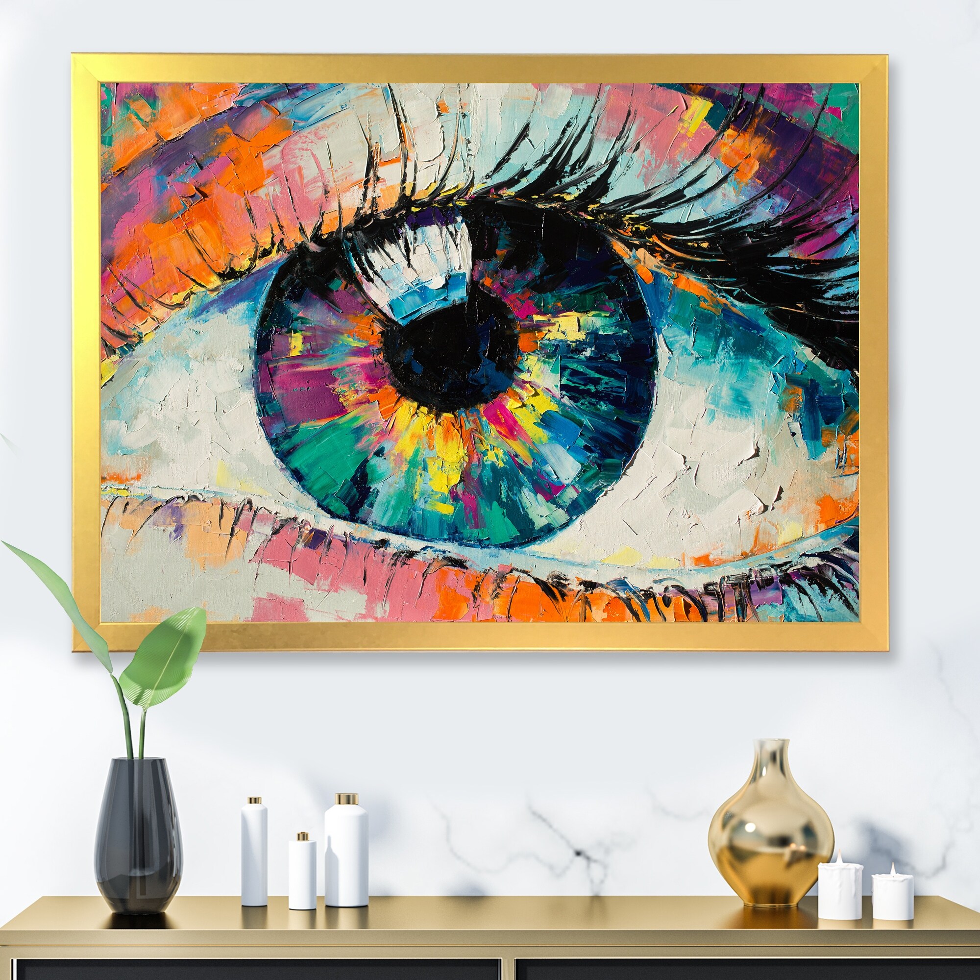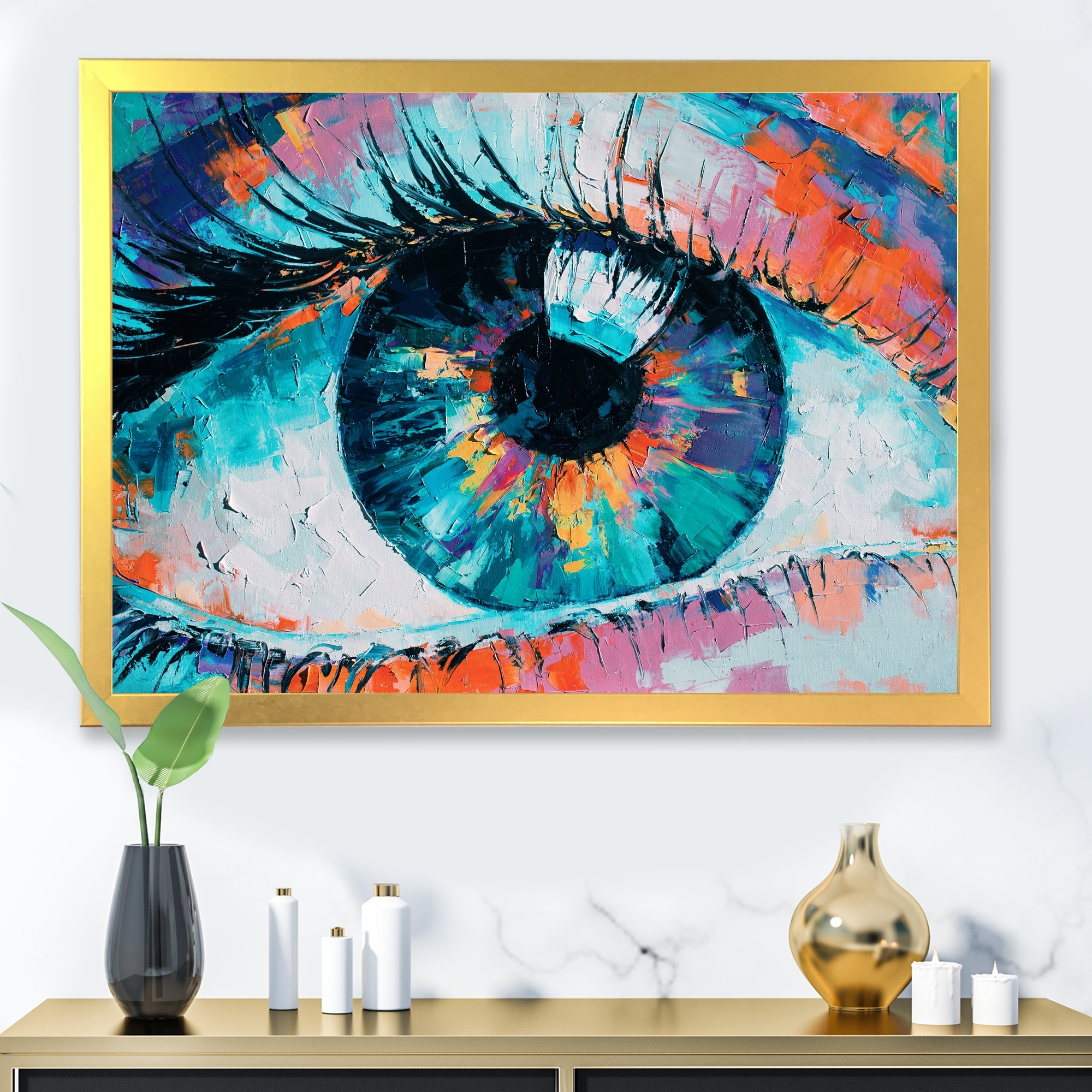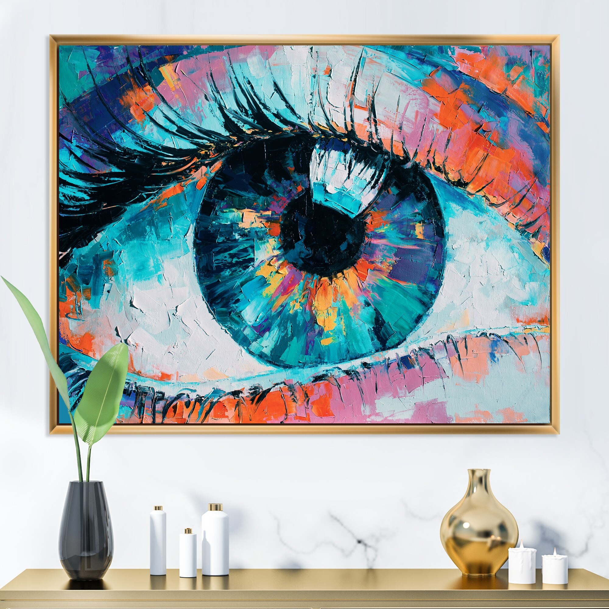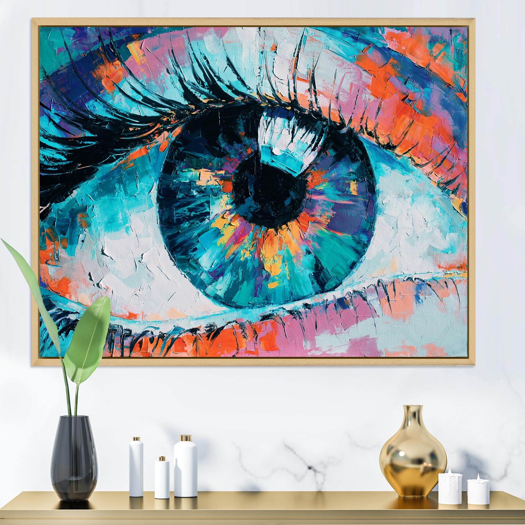 Designart "Colorful Turquoise Woman Eye Art II" Abstract Framed Canvas Art Print