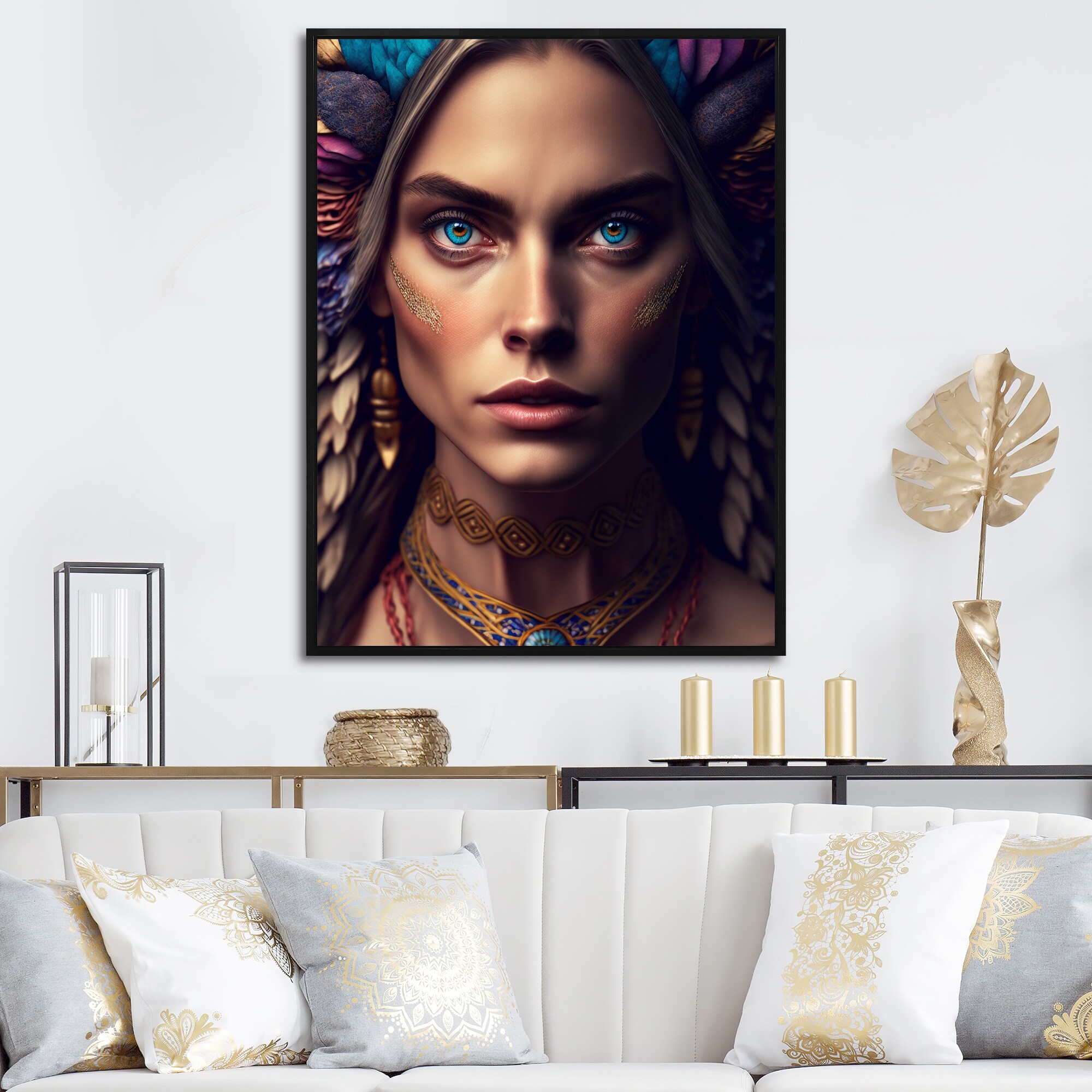 Designart "Bohemian Woman With Blue Eyes VIII" Boho Woman Framed Canvas Wall Art
