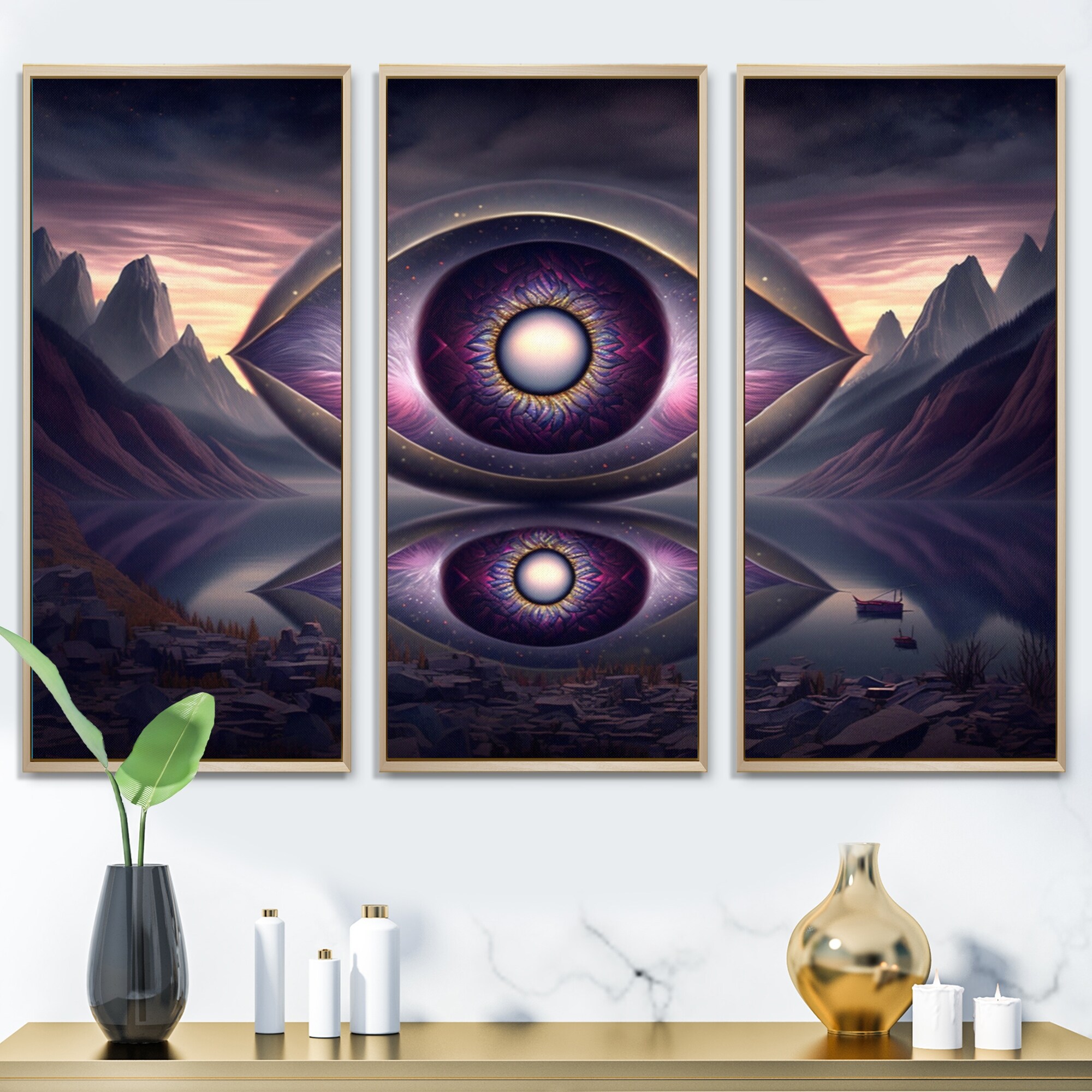Designart "Purple Eye Landscape I" Modern Geometric Framed Canvas Wall Art Print - 3 Panels