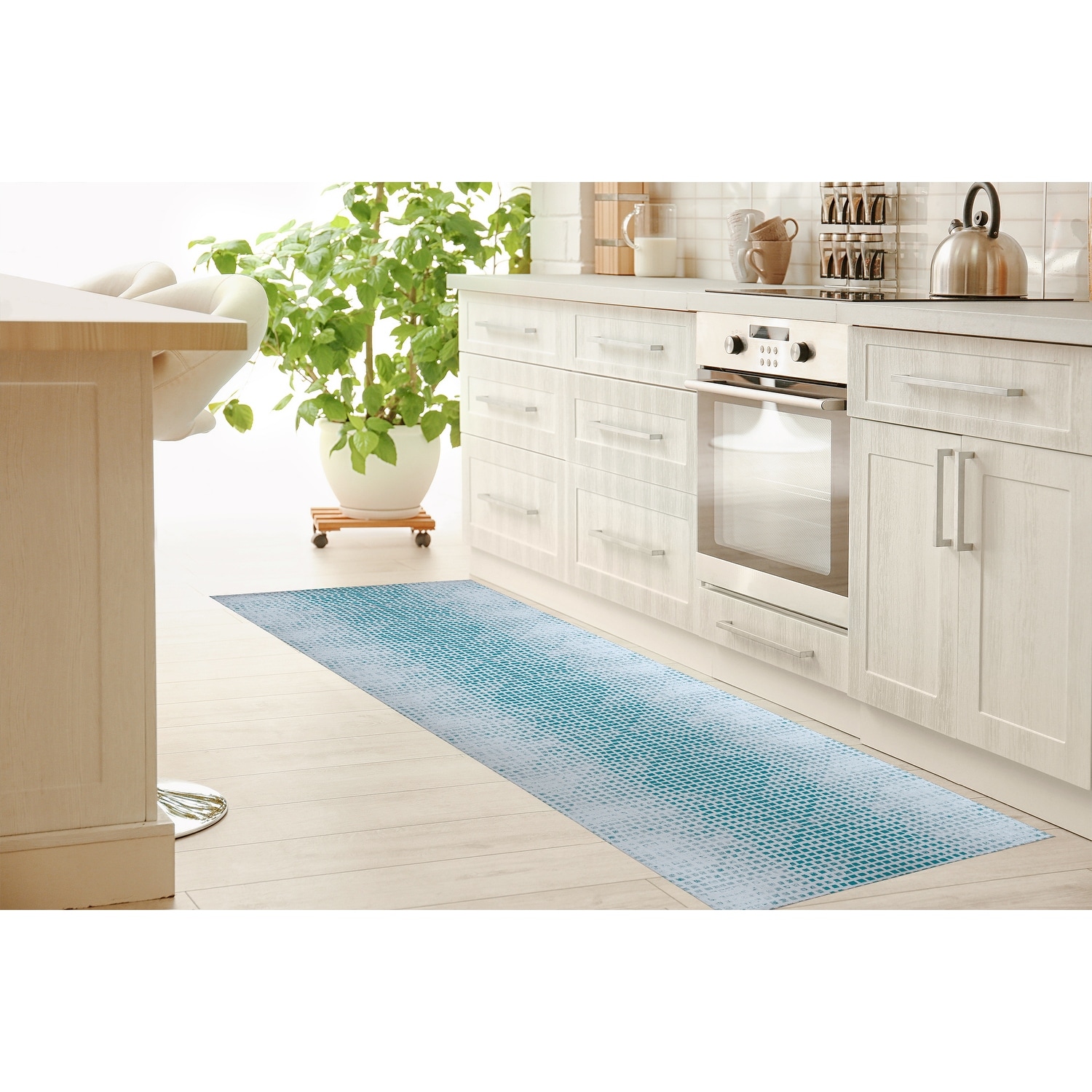 GODS EYE BLOCK PRINT TEAL Kitchen Mat by Kavka Designs