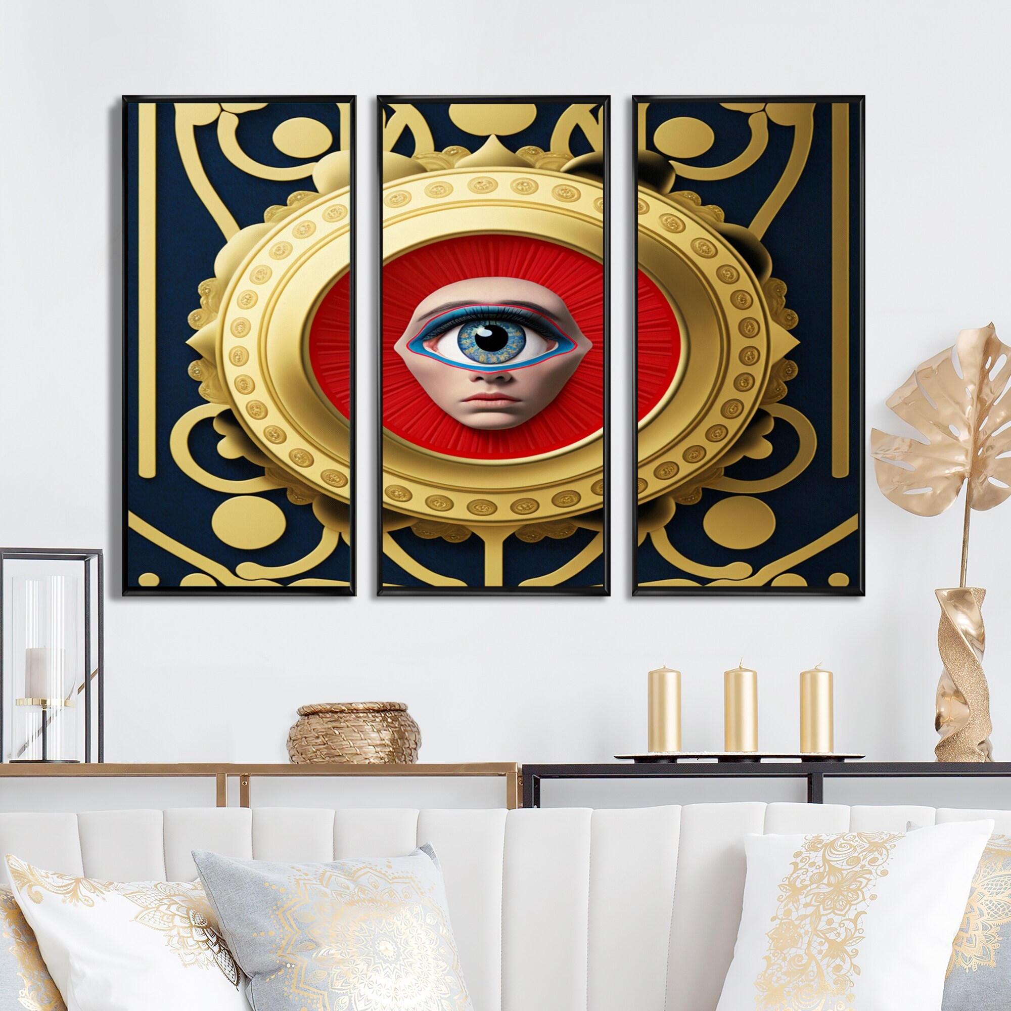 Designart "Radiant Eye of the Beholder I" Modern Abstract Framed Canvas Wall Art Print - 3 Panels