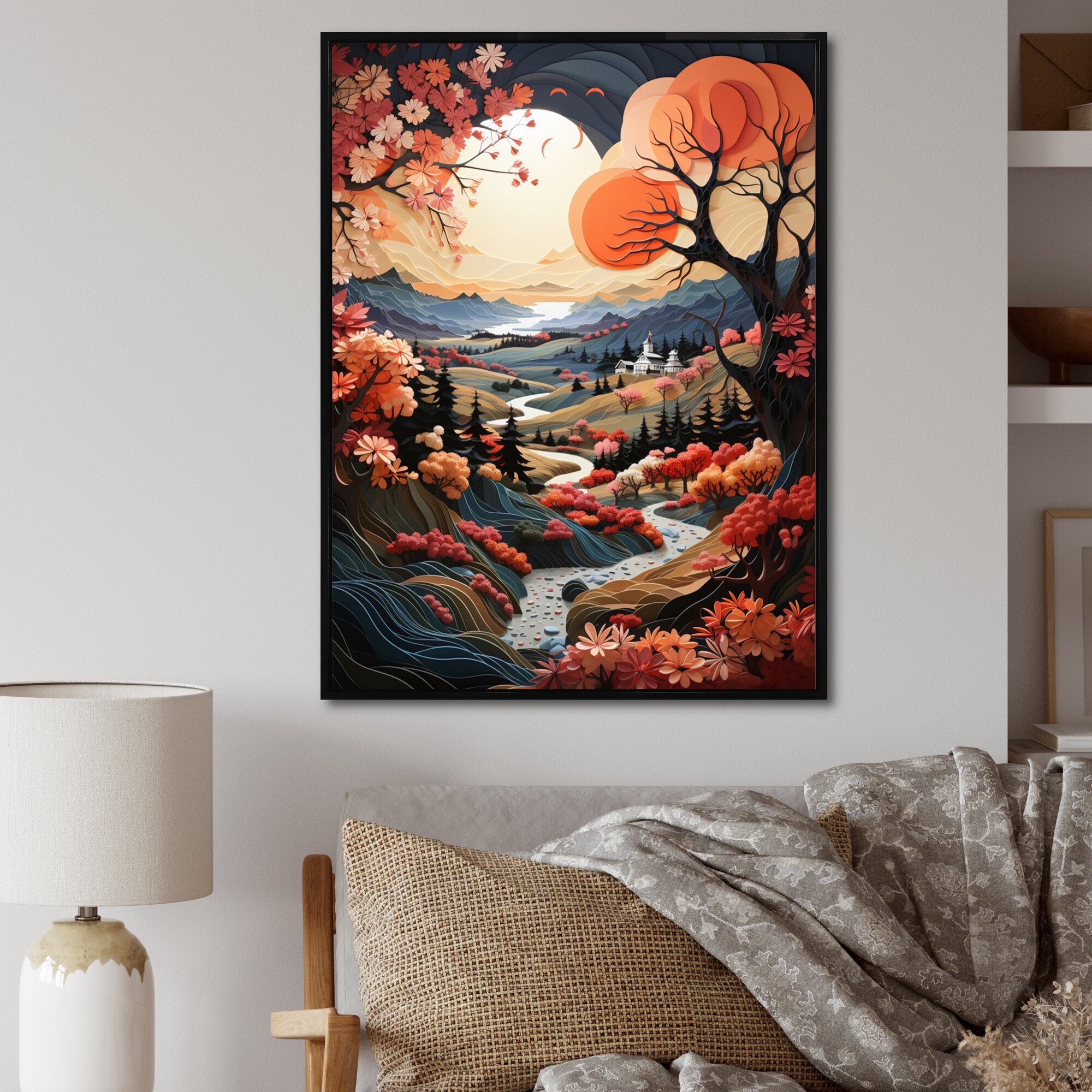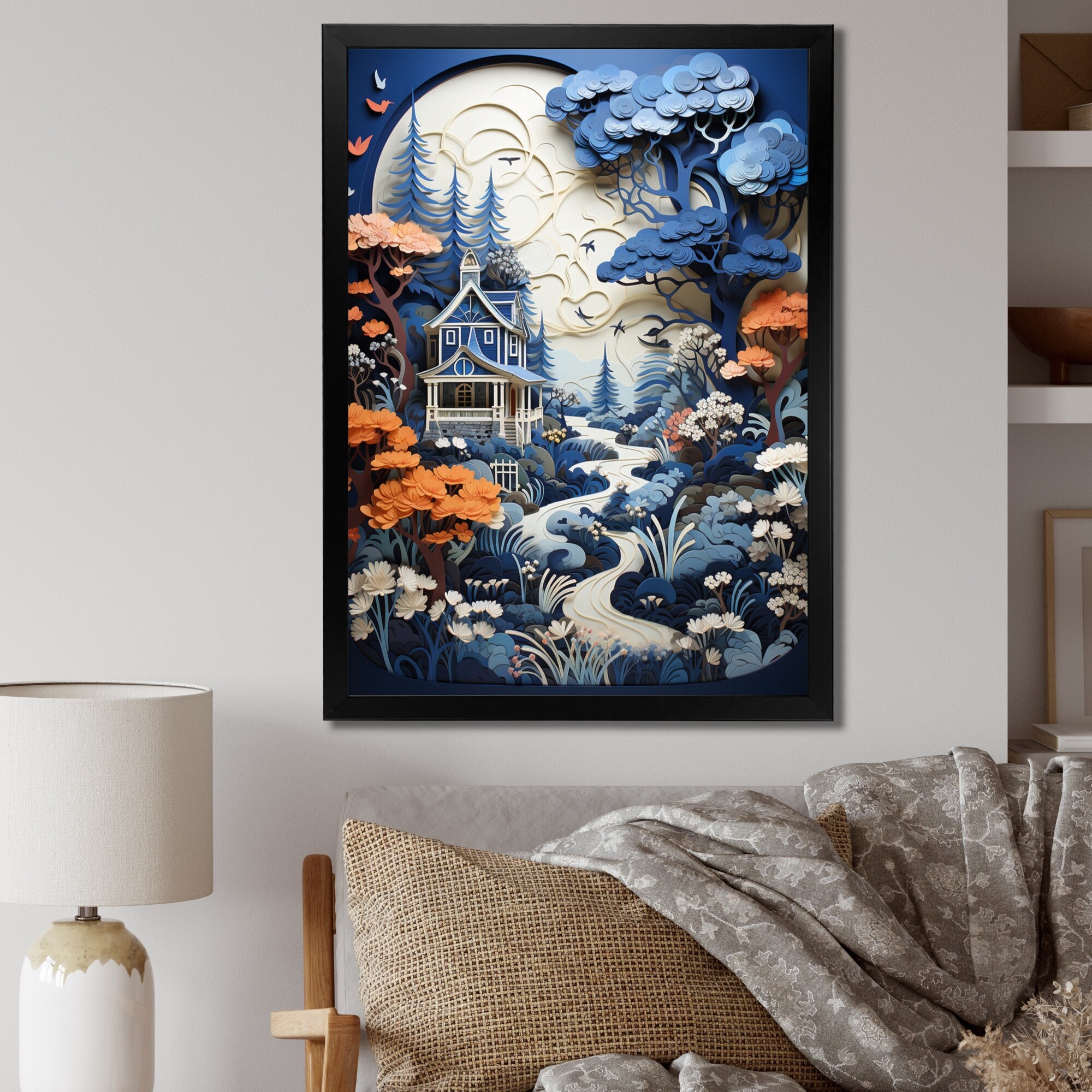 Designart "Farmhouse Nostalgic Retreat Papercut" Farm Framed Canvas Wall Art