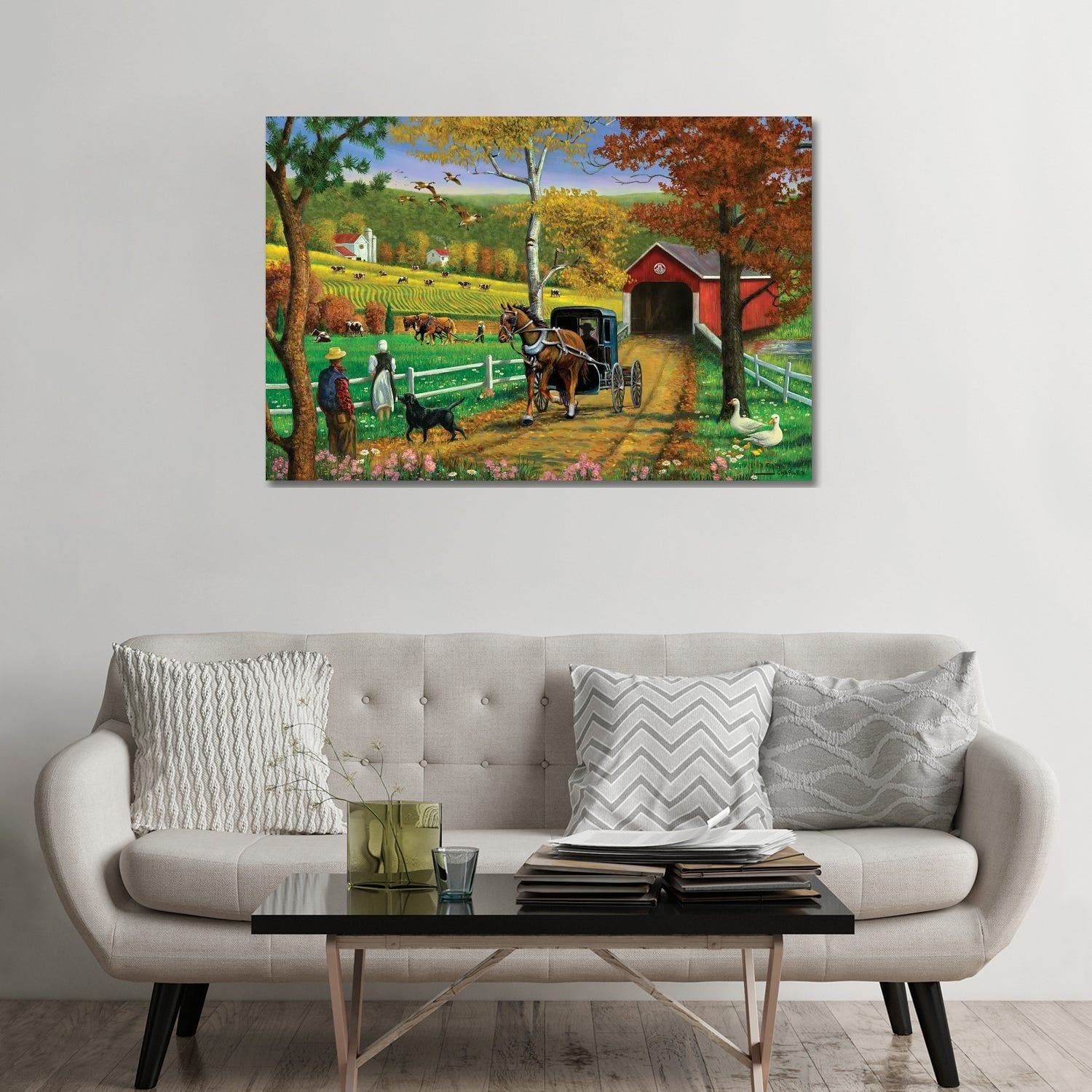 iCanvas "Farm And Covered Bridge" by J. Charles Canvas Print