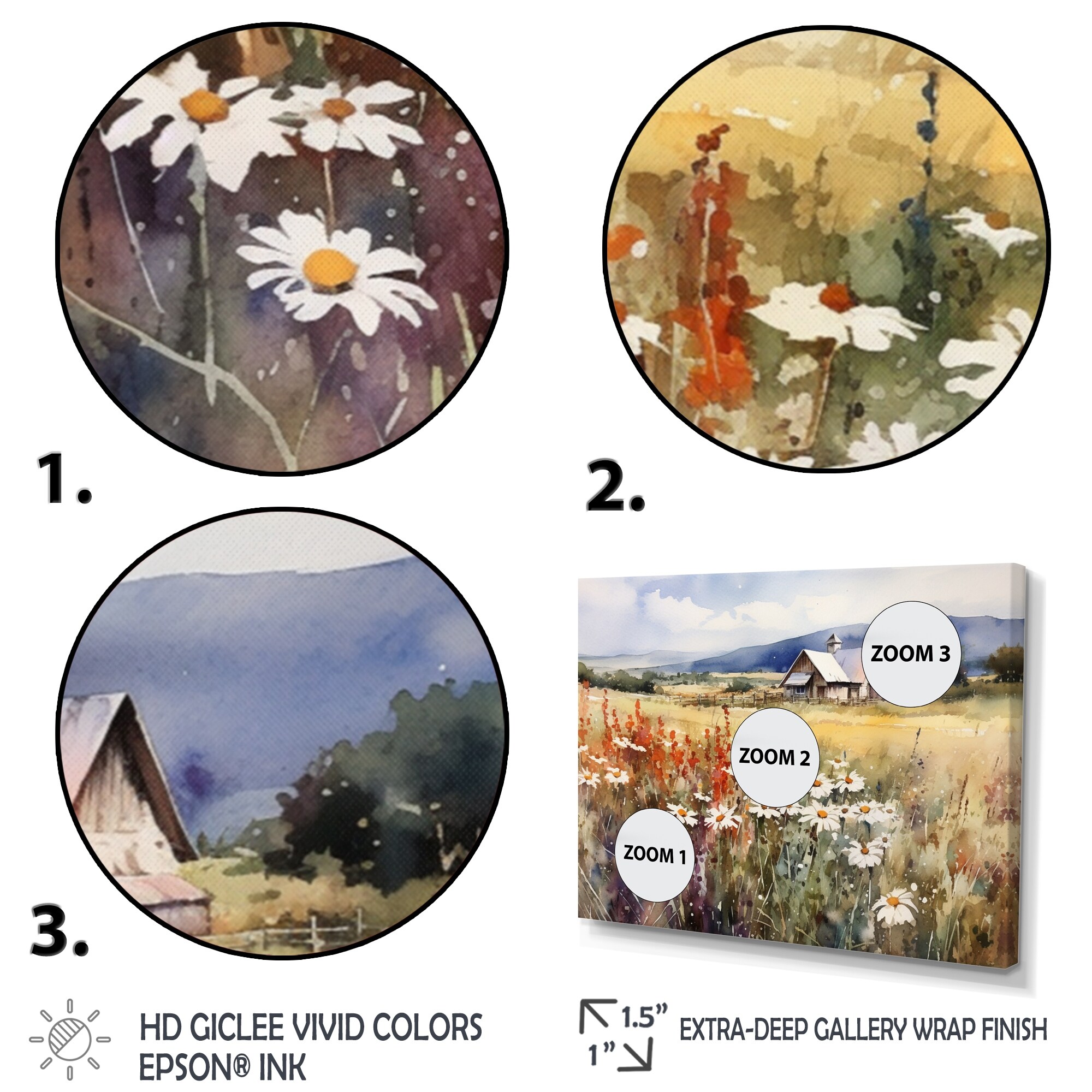 Designart "Green White Meadow At the Farm I" Wildflowers Framed Canvas Wall Art