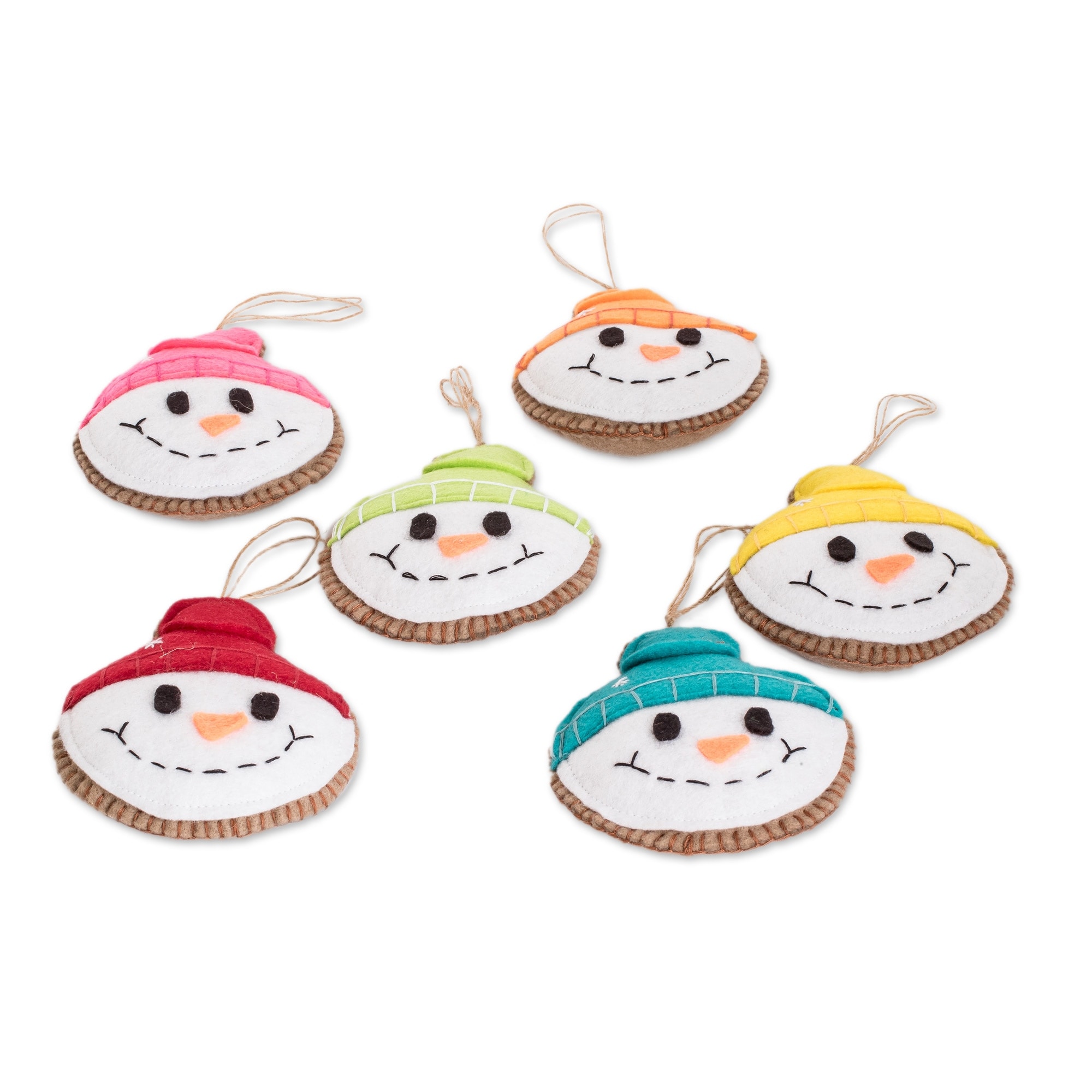 Novica Handmade Snowy Tenderness Felt Ornaments (Set of 6)