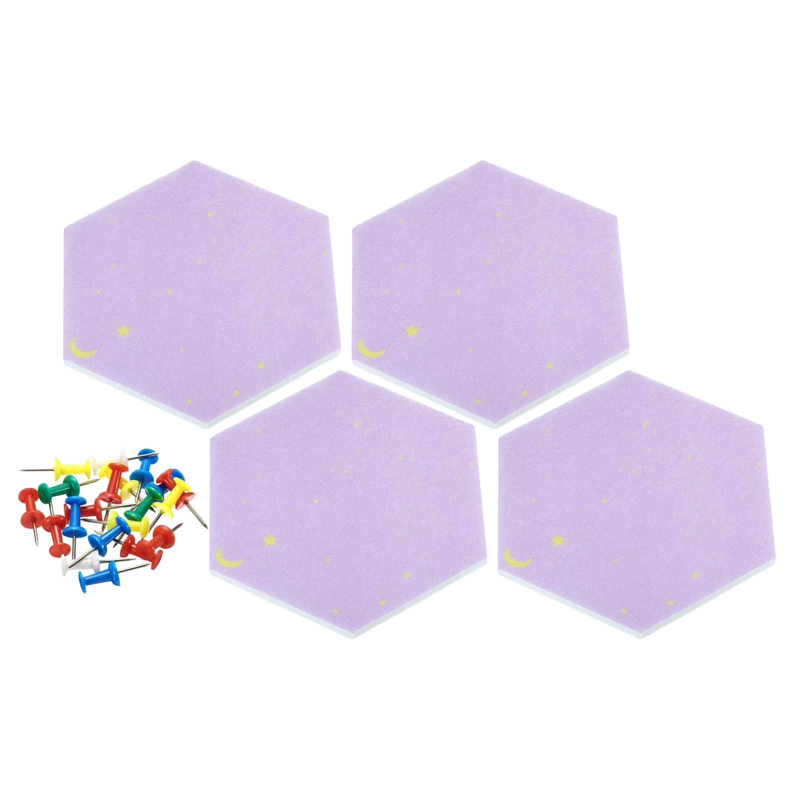 4Pcs Hexagon Felt Bulletin Tile Self Adhesive Mini Wall DIY Pin Board - Purple