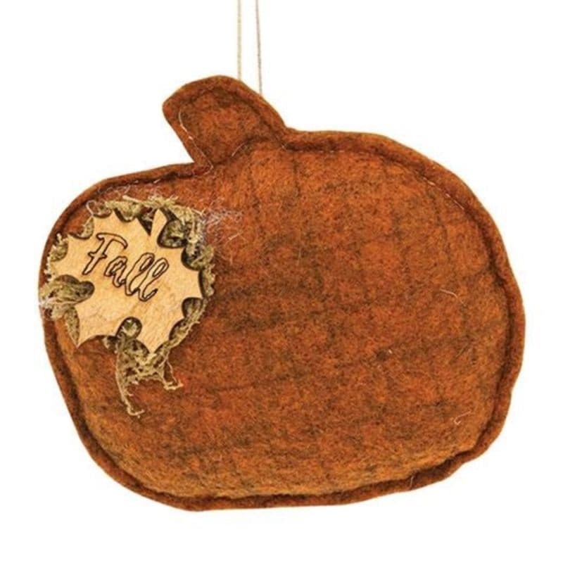 Fall Leaf Pumpkin Felt Ornament - H- 4.00 in x W-1.00 in x L-4.50 in.