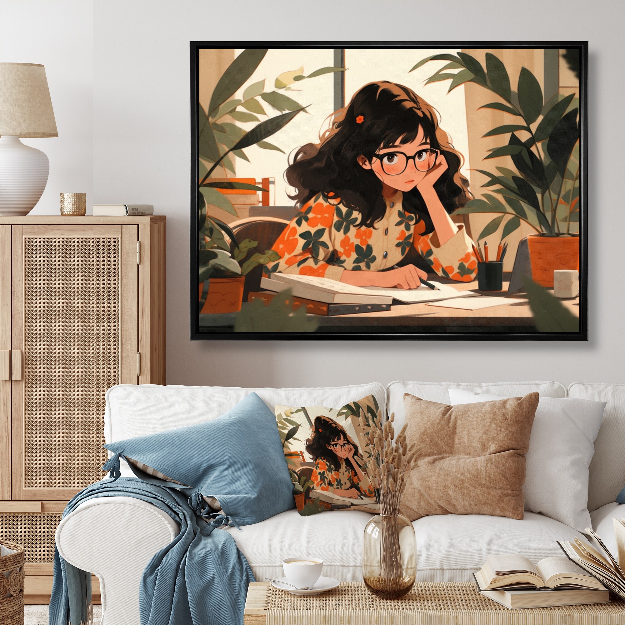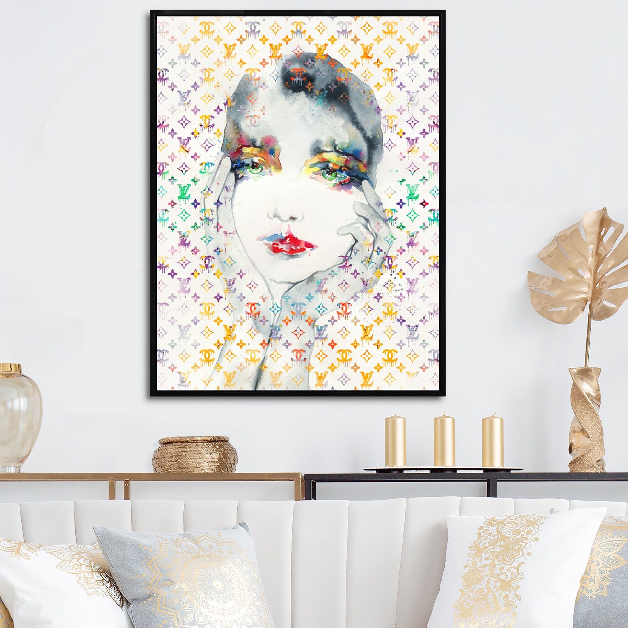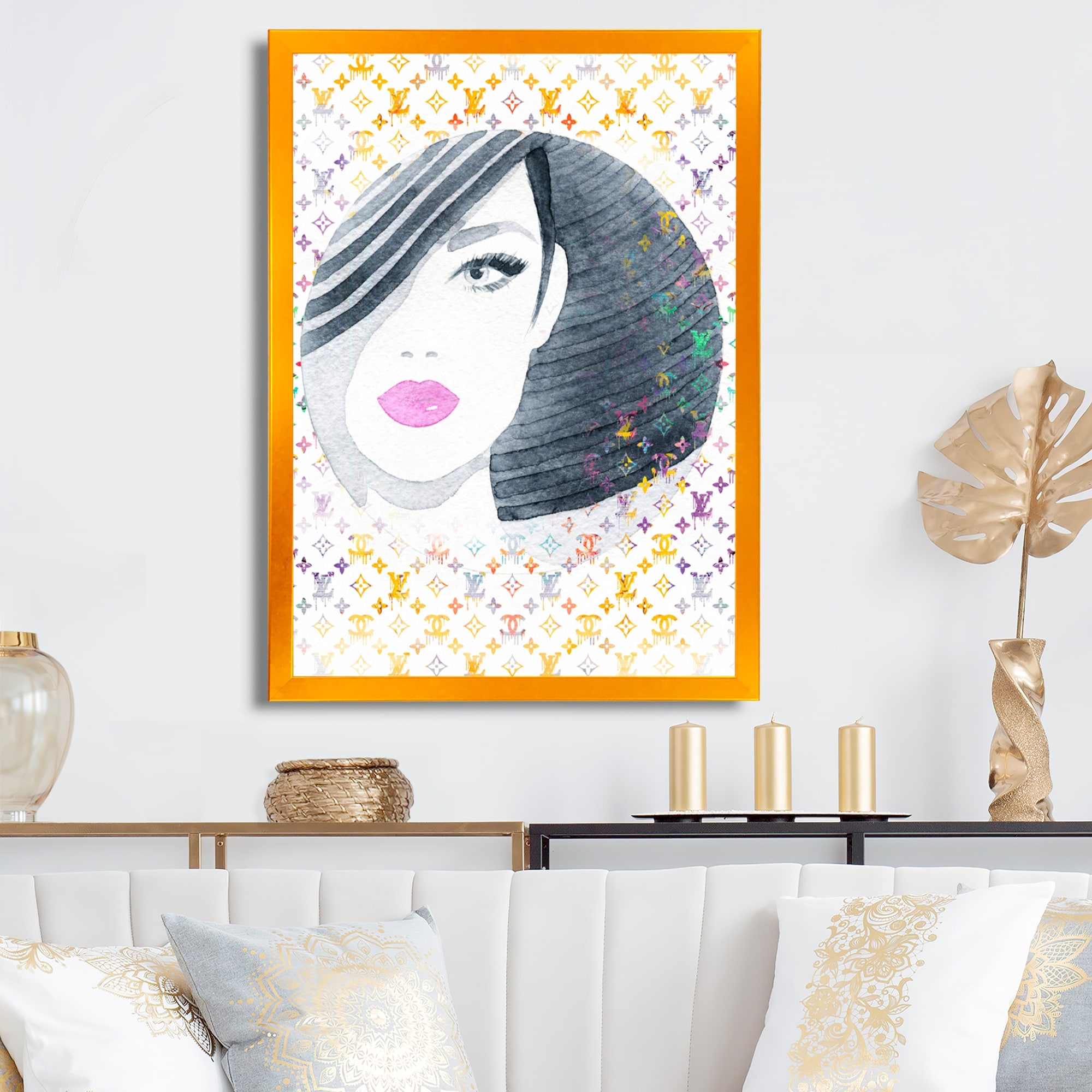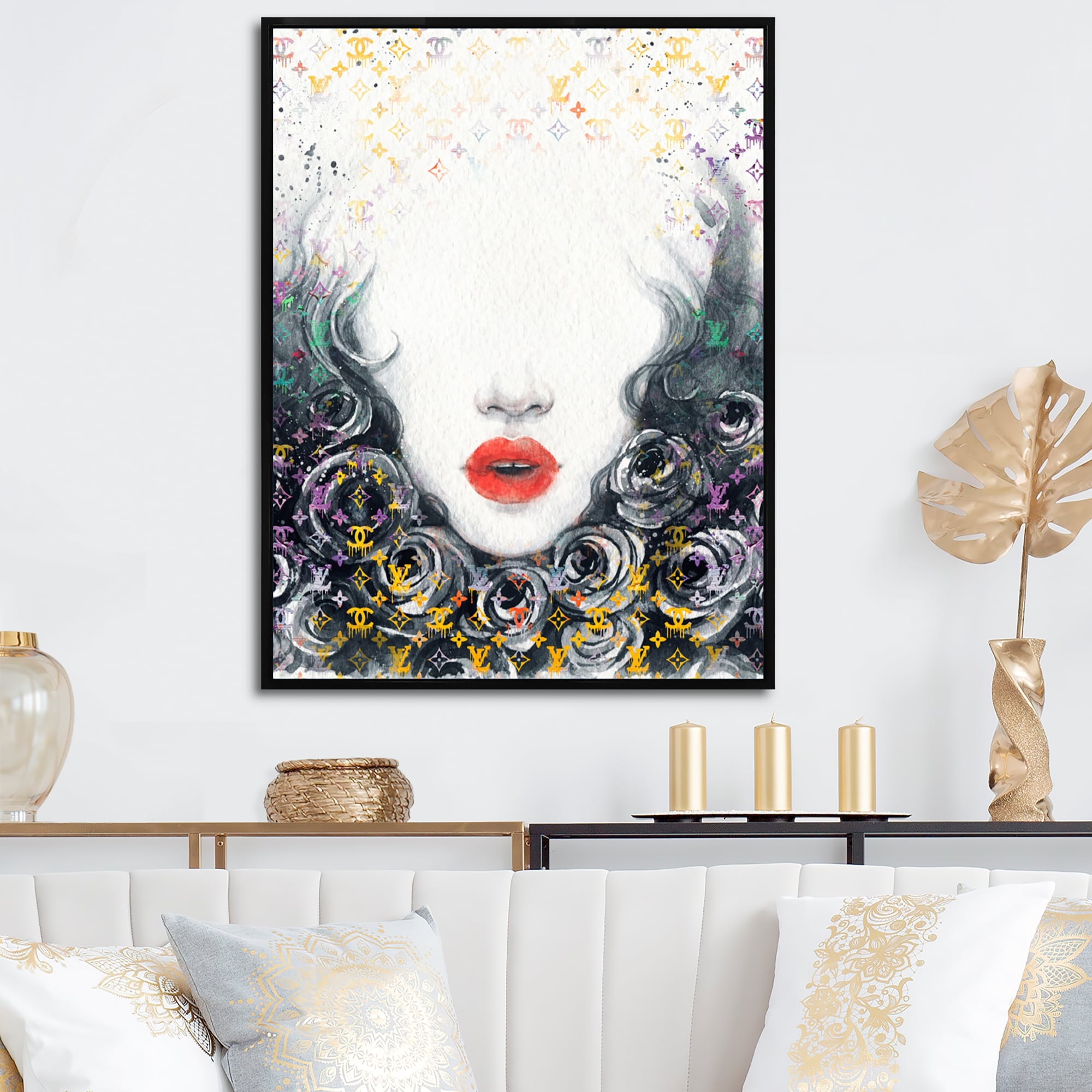 Designart "Female Parody Character III" Fashion Woman Framed Canvas Wall Art