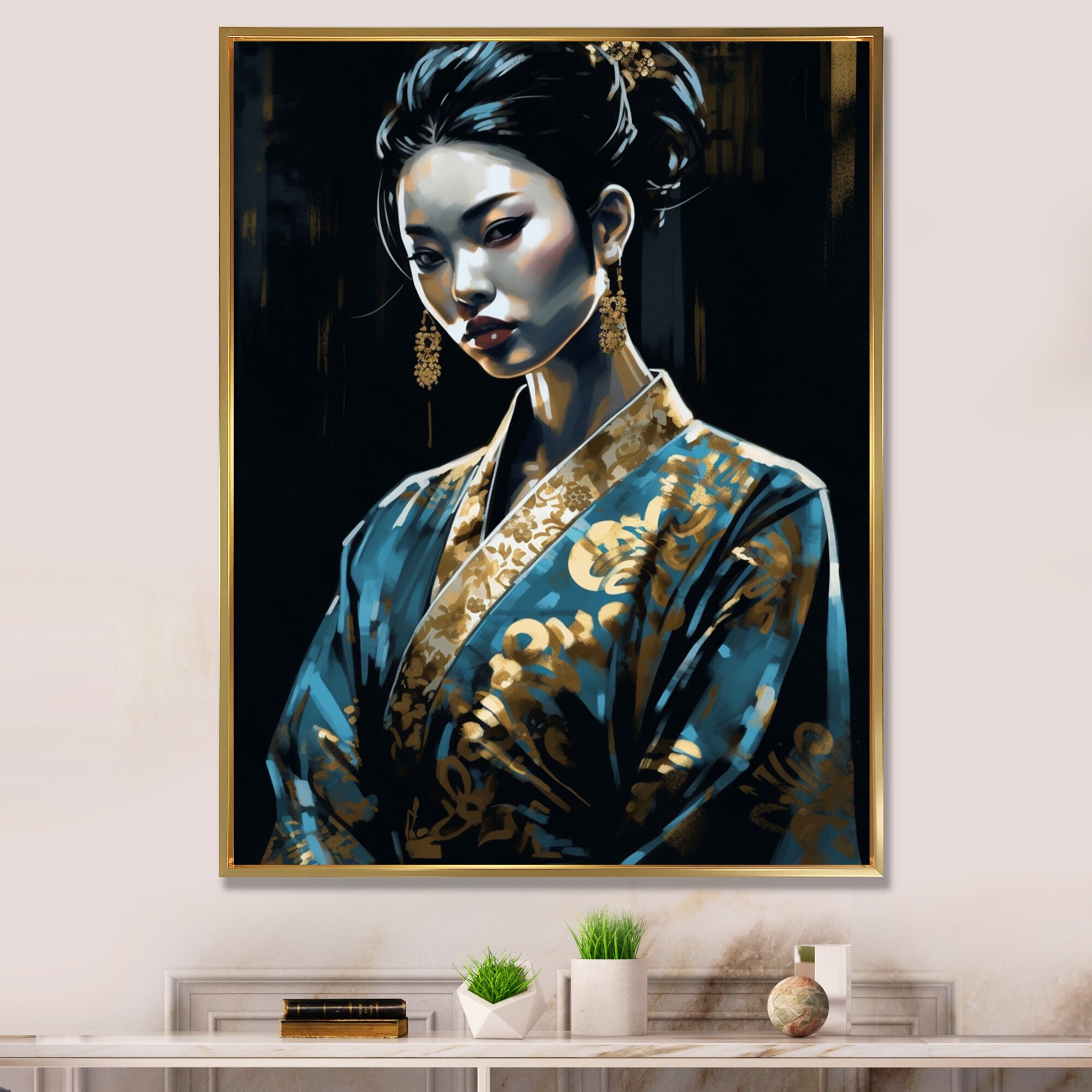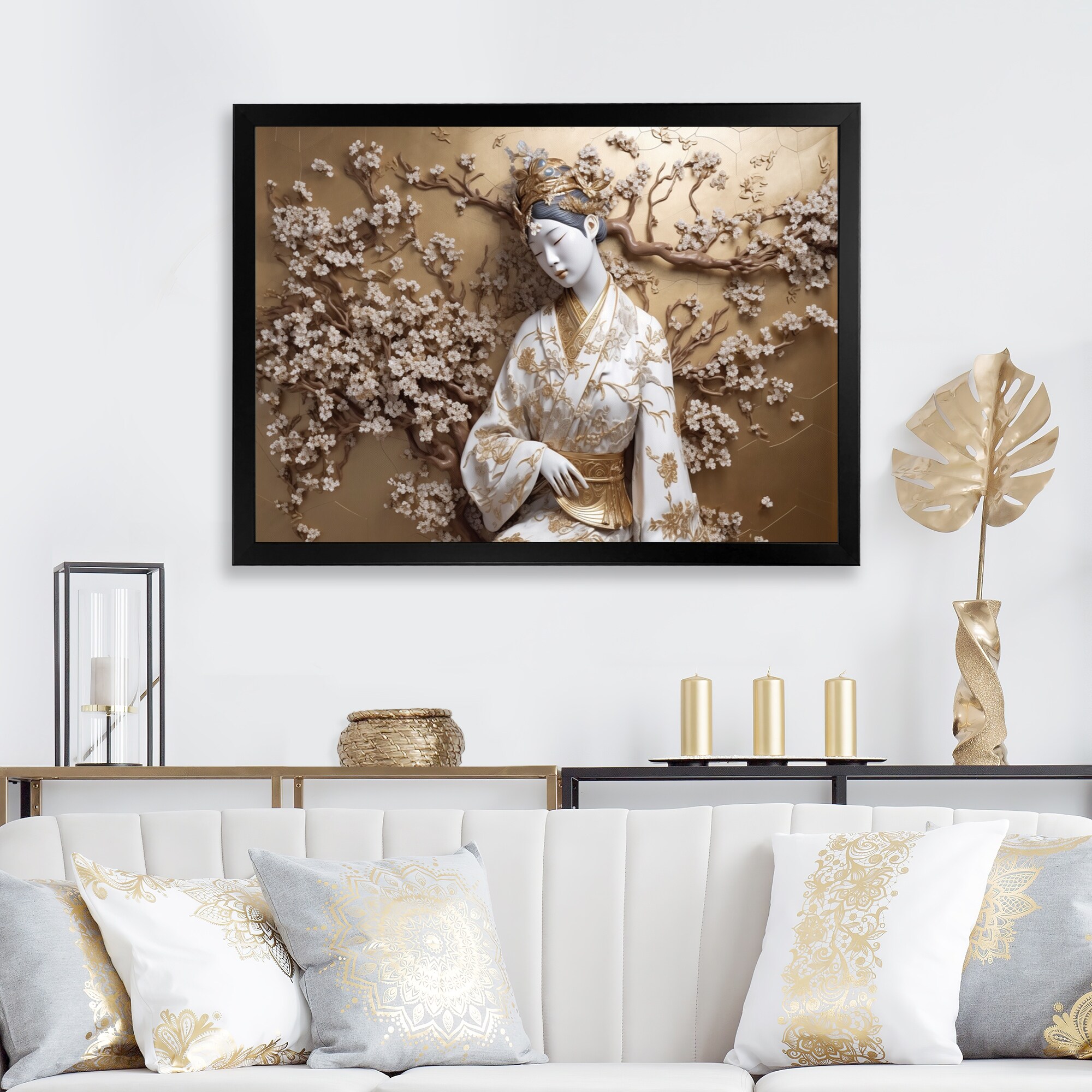 Designart "Japenese Female Statue" Japon Woman Framed Wall Art for Living Room