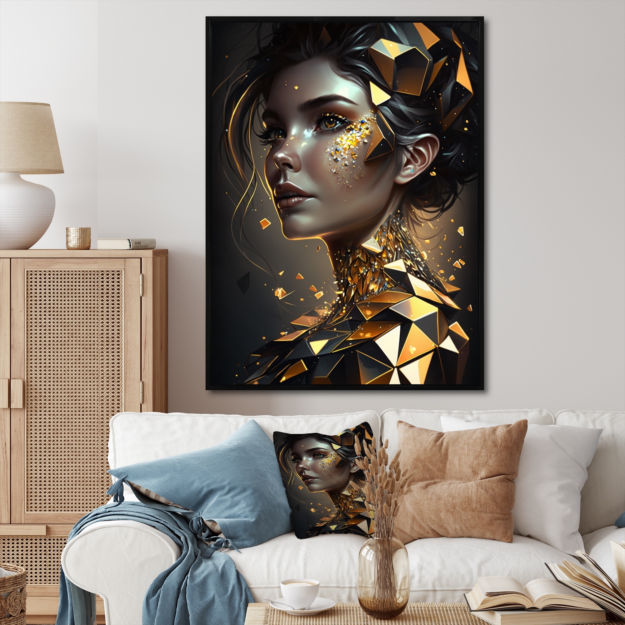 Designart "Gold Crystal Female Portrait Iv" Modern Woman Framed Canvas Print