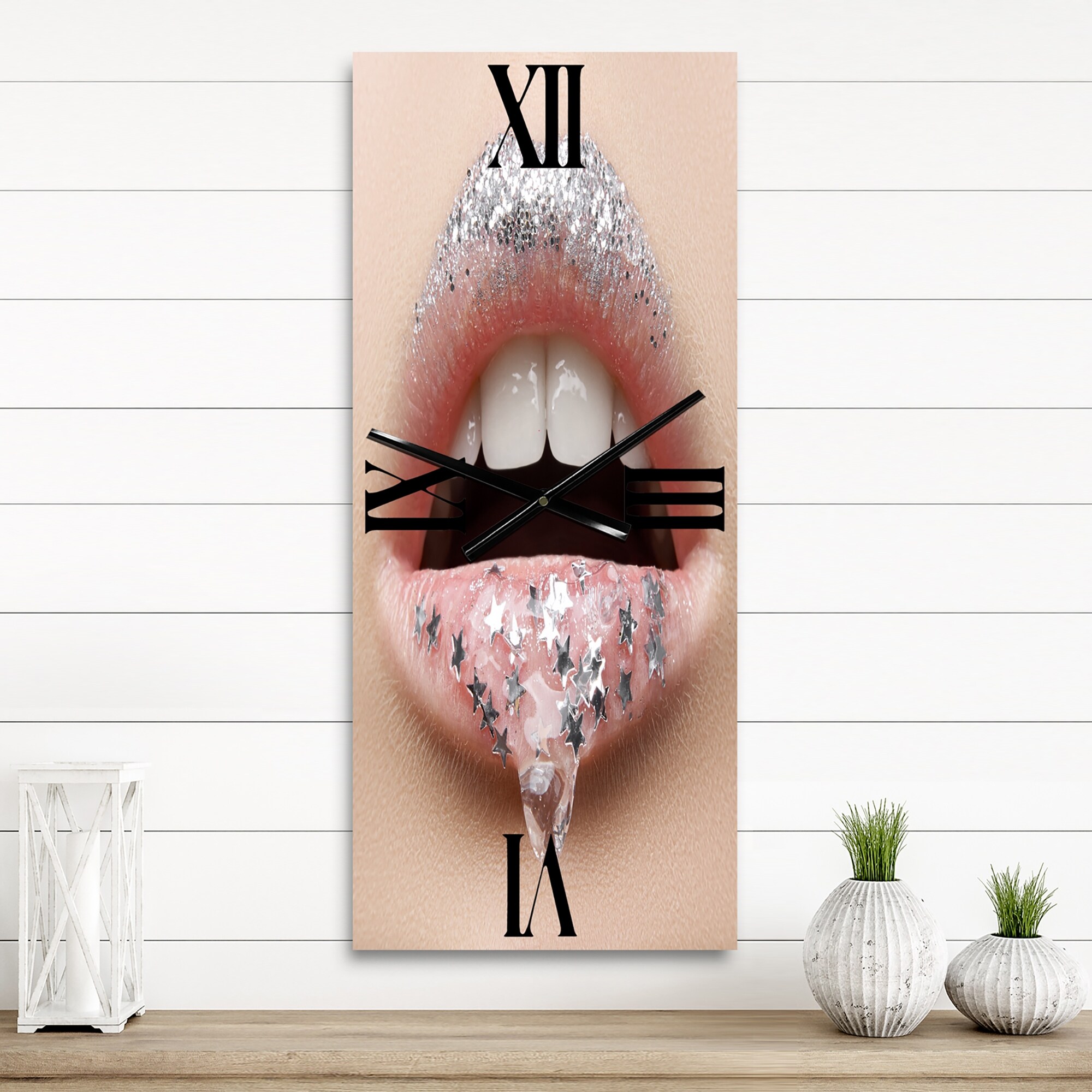 Designart 'Female Lips With A Gel on the Lips & Stars' Modern Wall Clock Decor