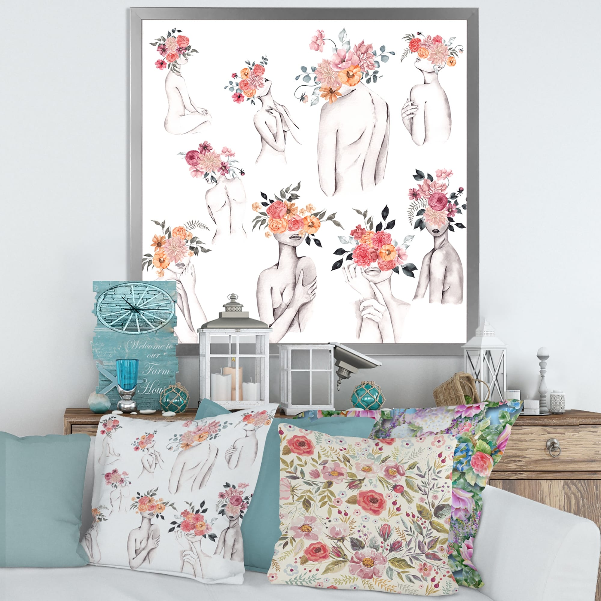 Designart "Female Silhouette and Floral Bouquet" Modern Framed Art Print