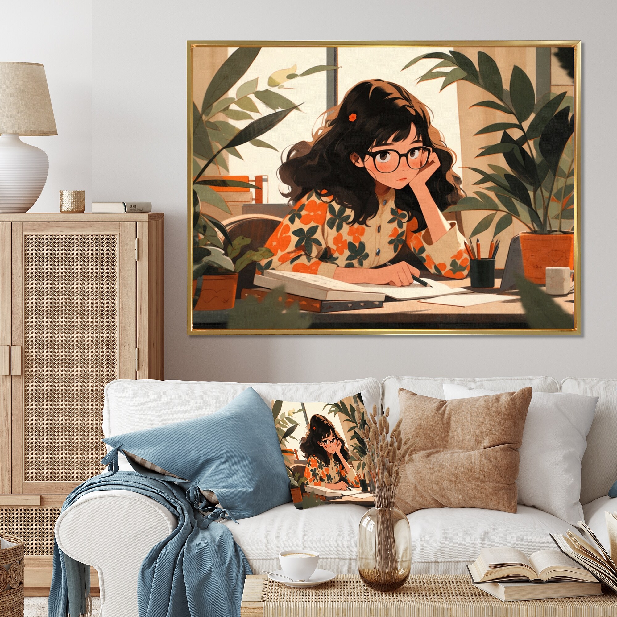Designart "Funky Female Fashion Illustration III" Fashion Framed Canvas Art Print