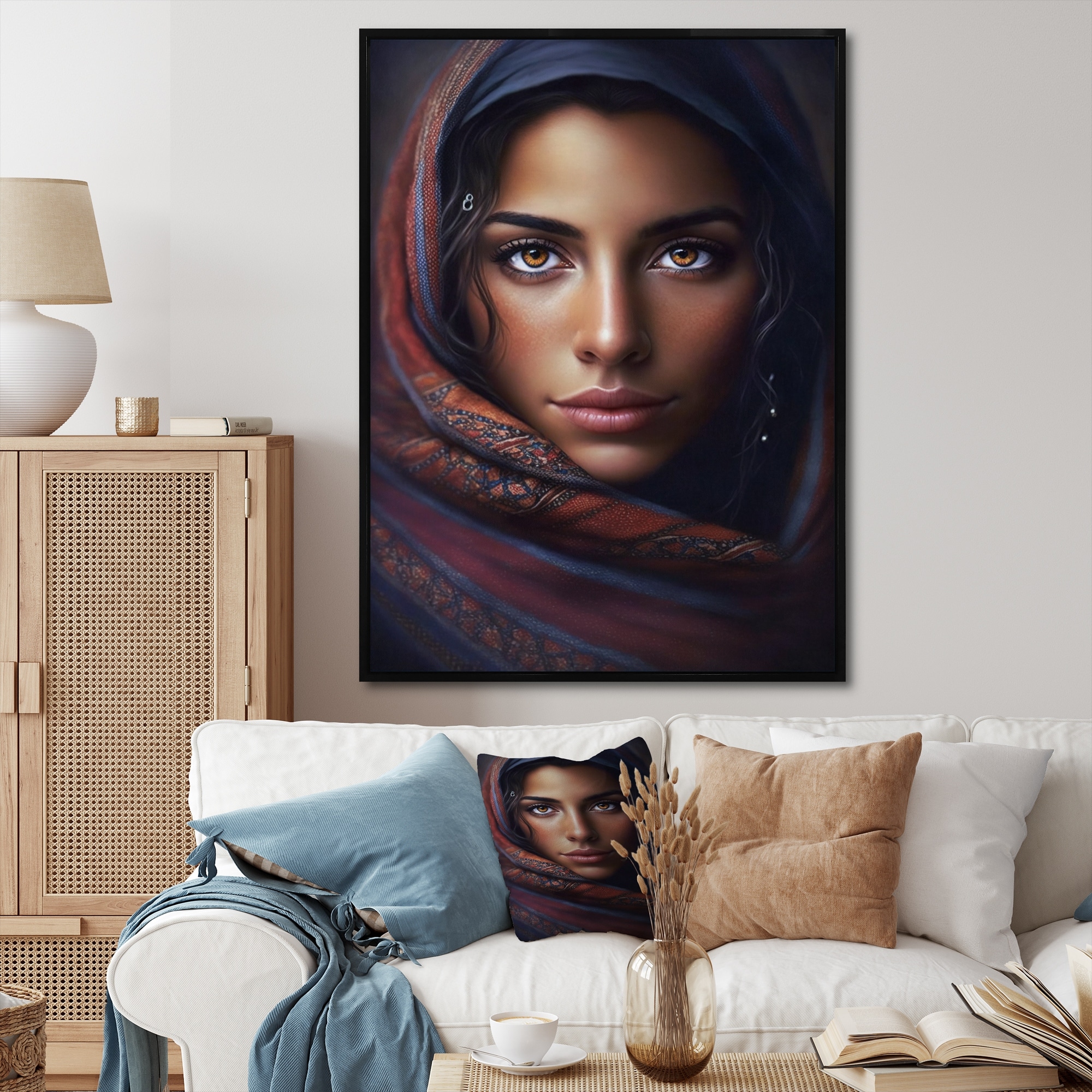 Designart "Enchanting Female Gaze Ii" Modern Woman Framed Canvas Art Print