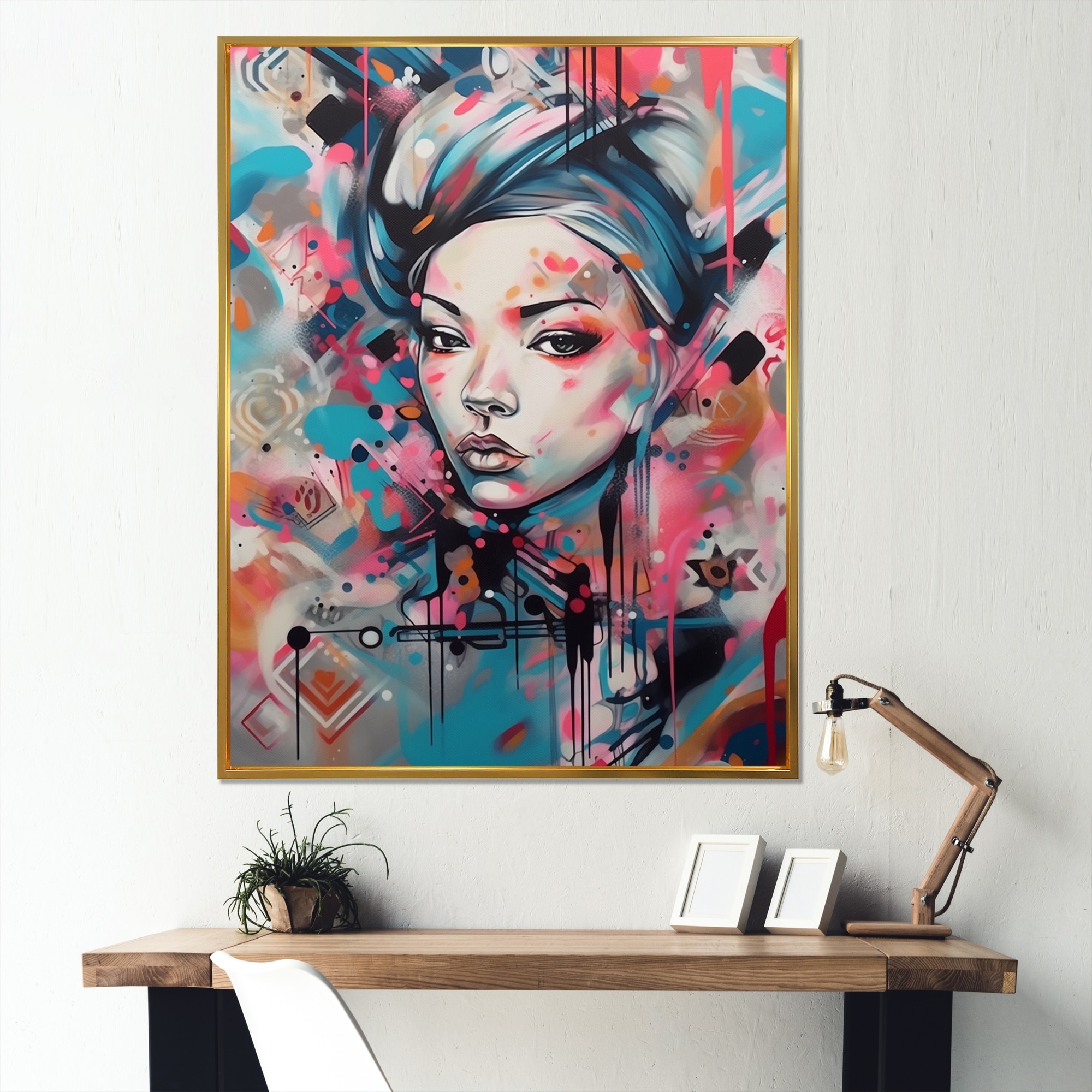 Designart "Female Pop Art Portrait Ii" Modern Woman Framed Canvas Print