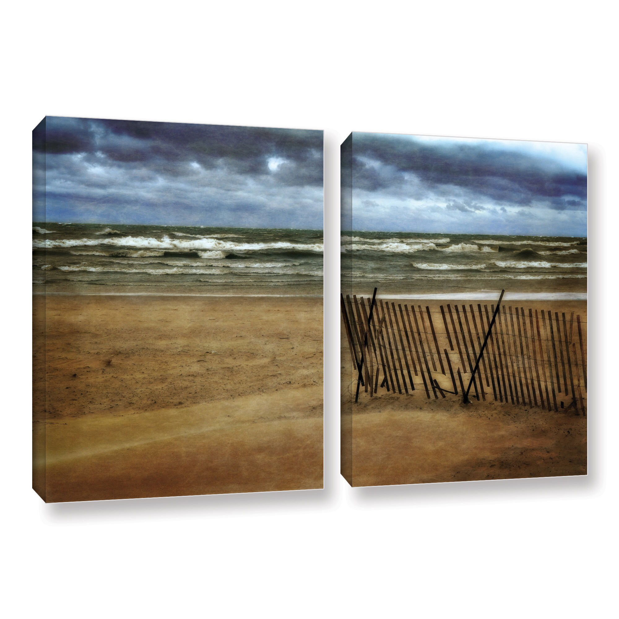 ArtWall Kevin Calkins ' Snow Fence and Waves 2 Piece ' Gallery-Wrapped Canvas Set - Multi