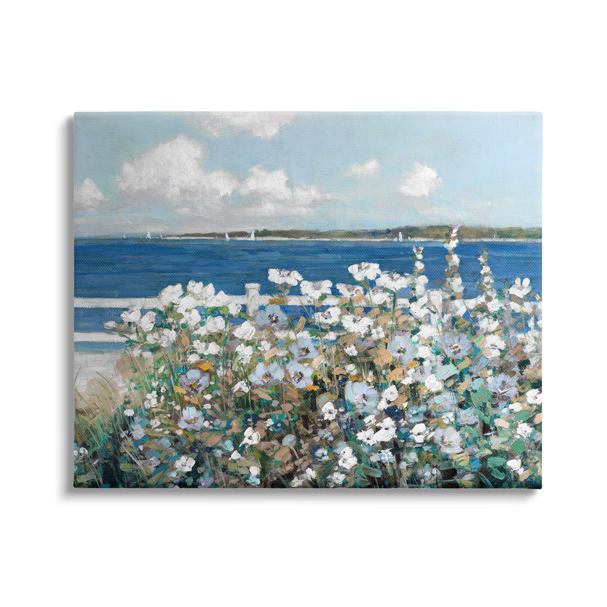 Stupell Industries Beautiful White Flower Bush Seaside Fence Ocean View Canvas Wall Art
