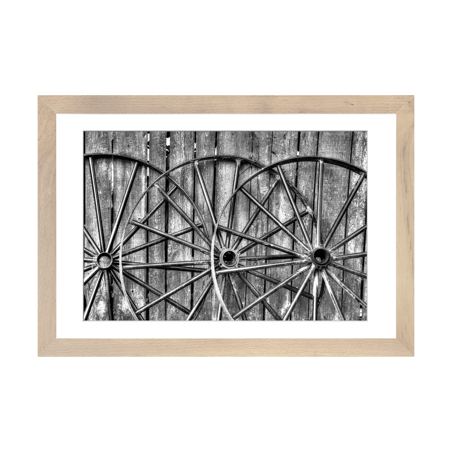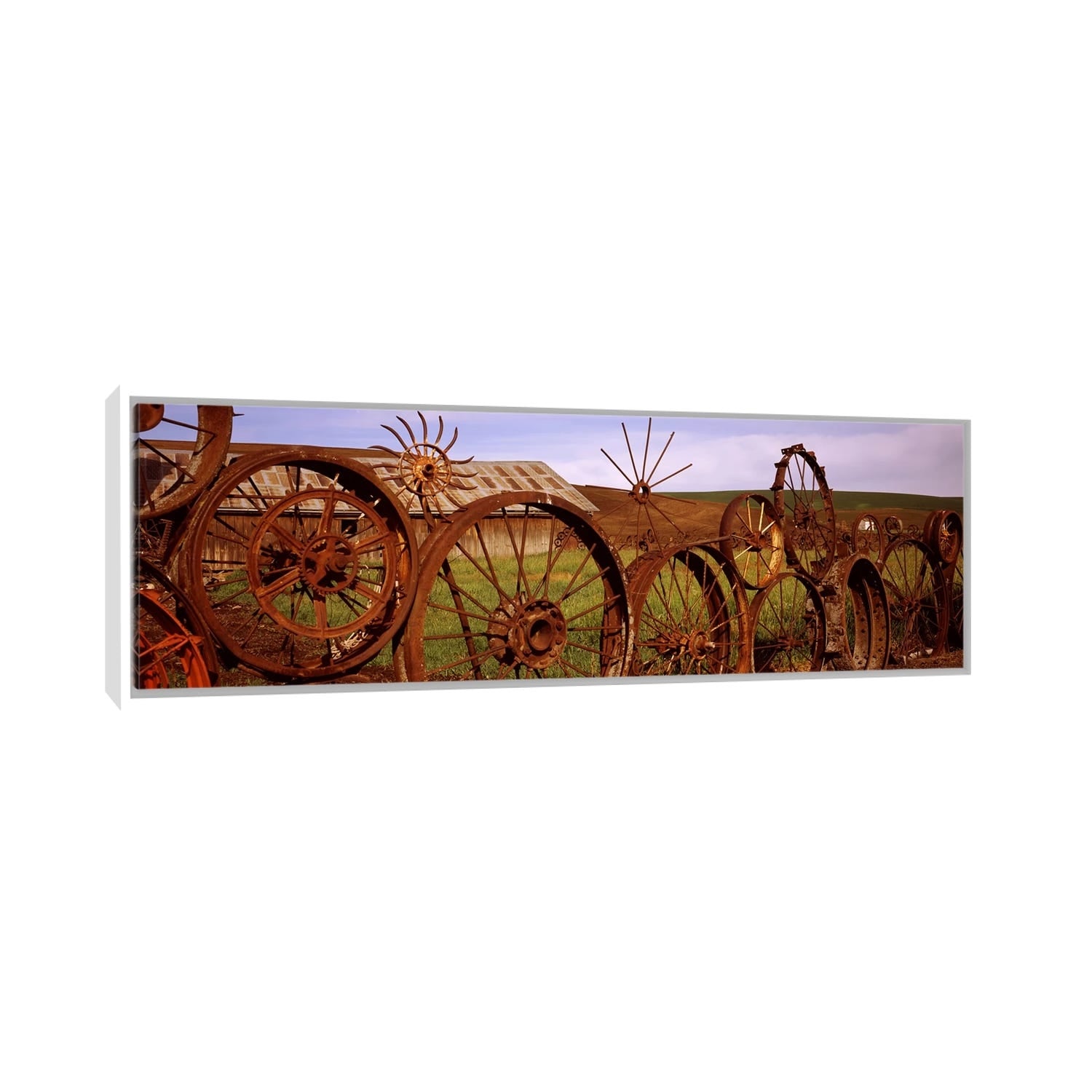 iCanvas "Old barn with a fence made of wheels, Palouse, Whitman County,Washington State" by Panoramic Images Framed Canvas Print