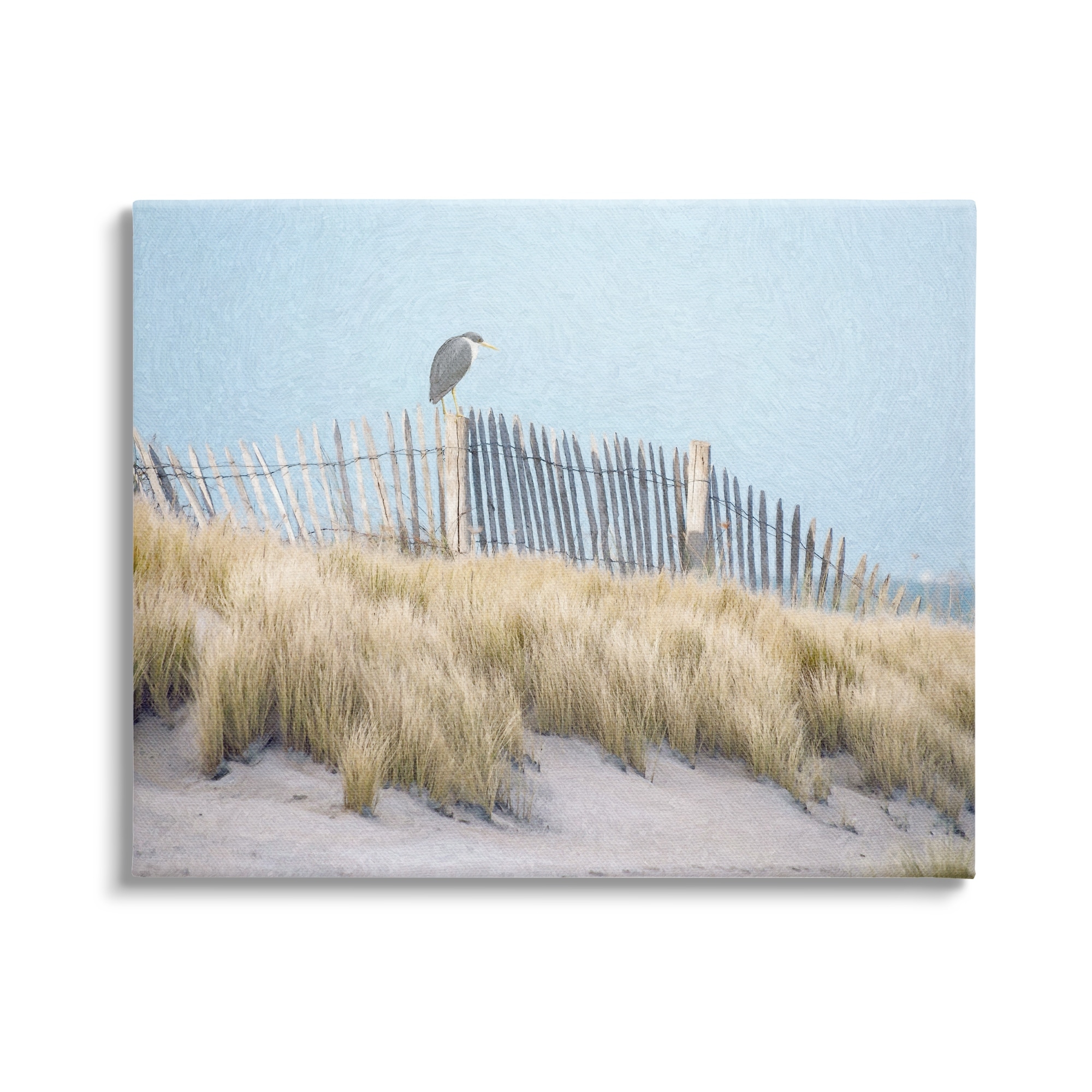 Stupell Industries Bird Perched Nautical Beach Fence Canvas Wall Art by Steve Hunziker