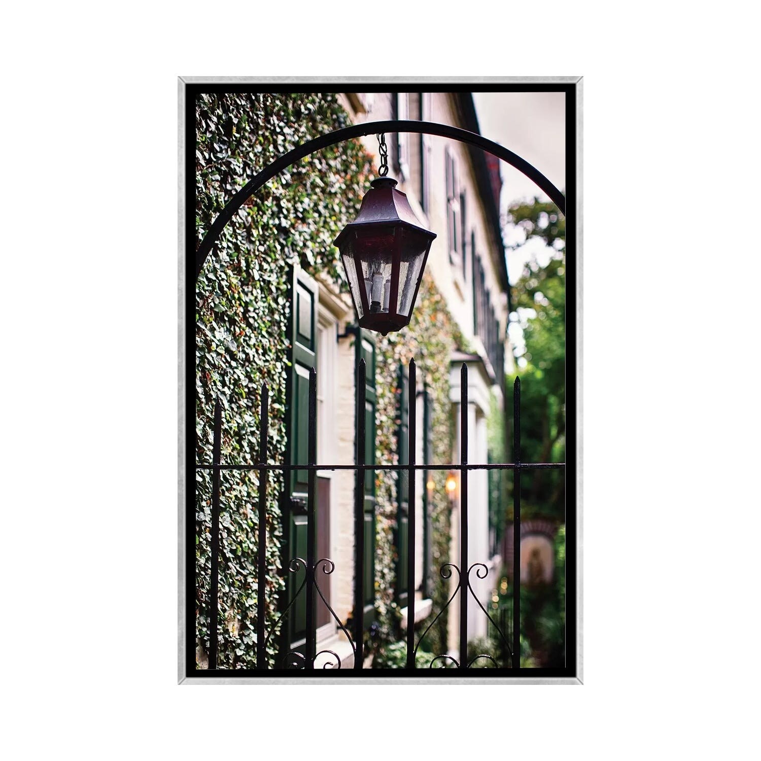 iCanvas "Close Up View of an Antique Lamp Hanging from an Iron Fence, Charleston, South Carolina" by George Oze Framed