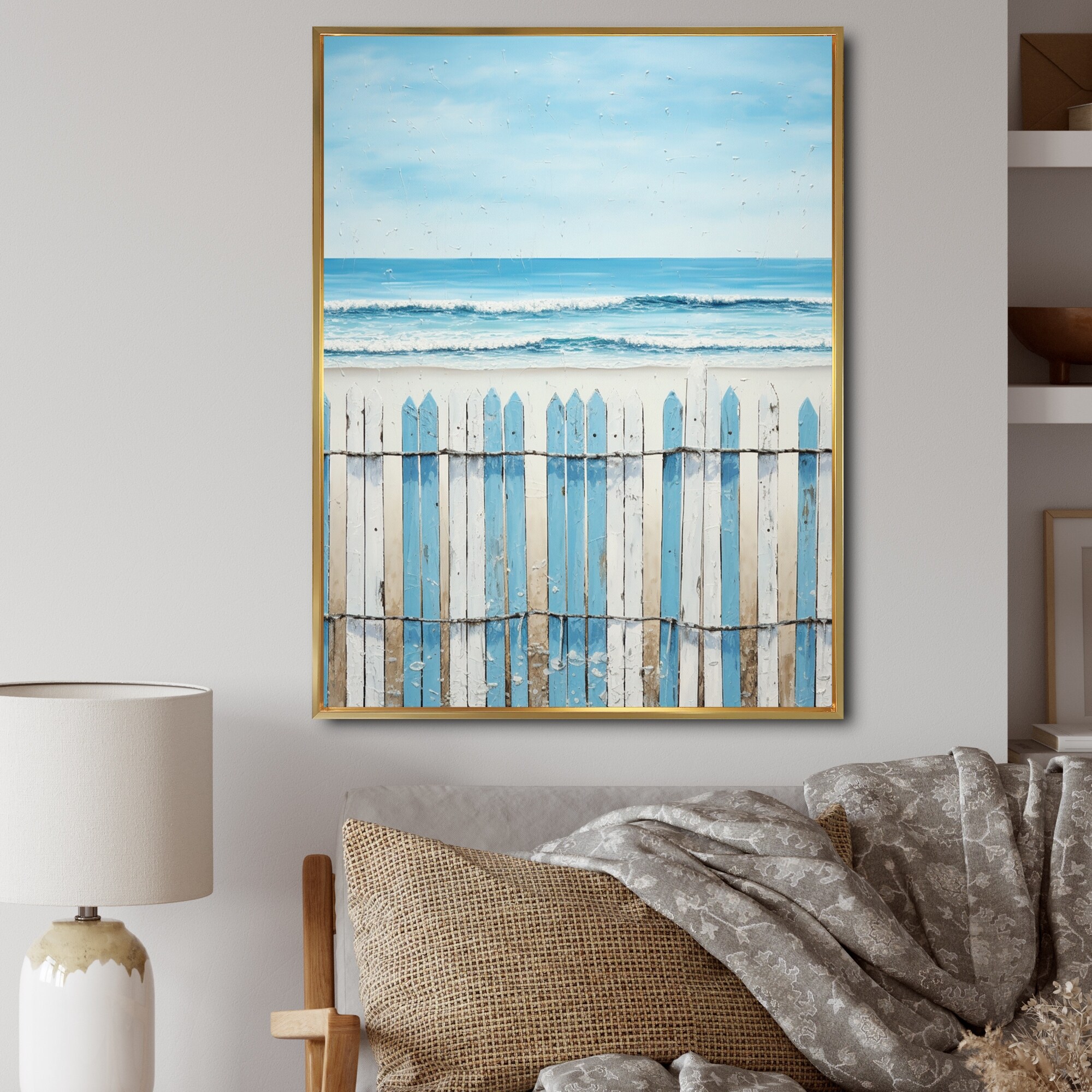 Designart "Coastal Minimalism Beach Fence II" Beach Framed Wall Art Living Room