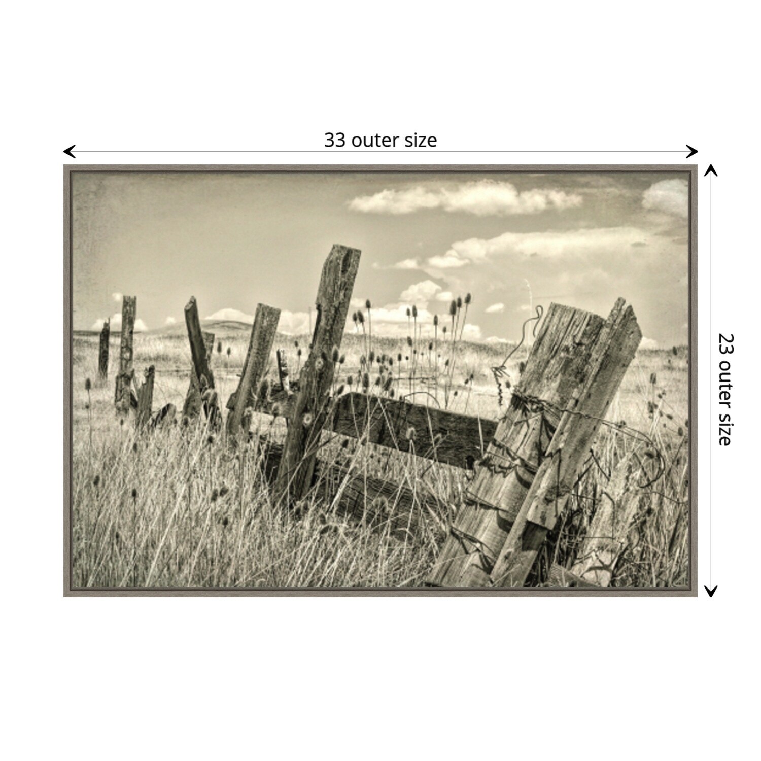 Old wooden fence 1 by Don Paulson Danita Delimont (33 x 23 in.), Framed Canvas Wall Art Print - Sylvie Greywash