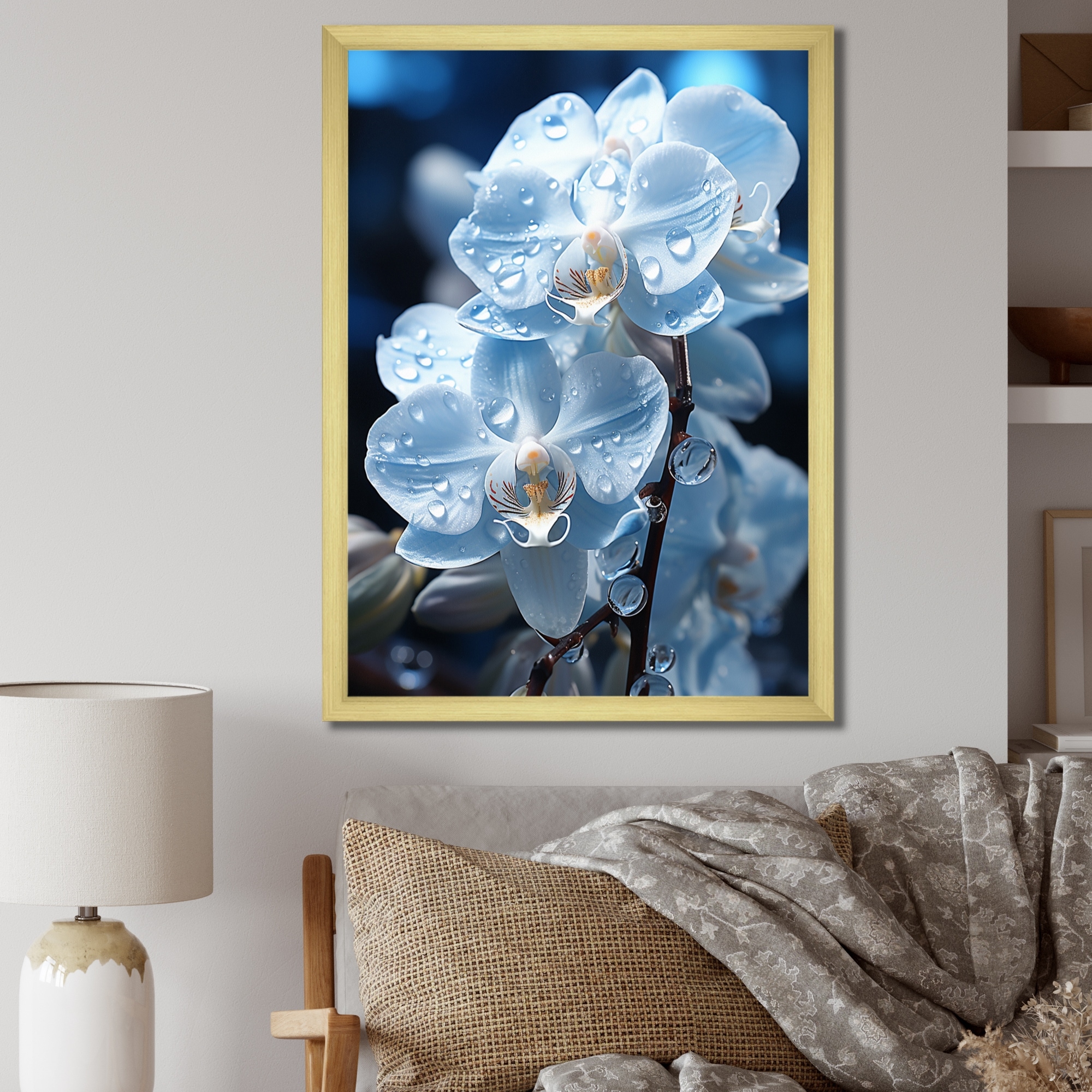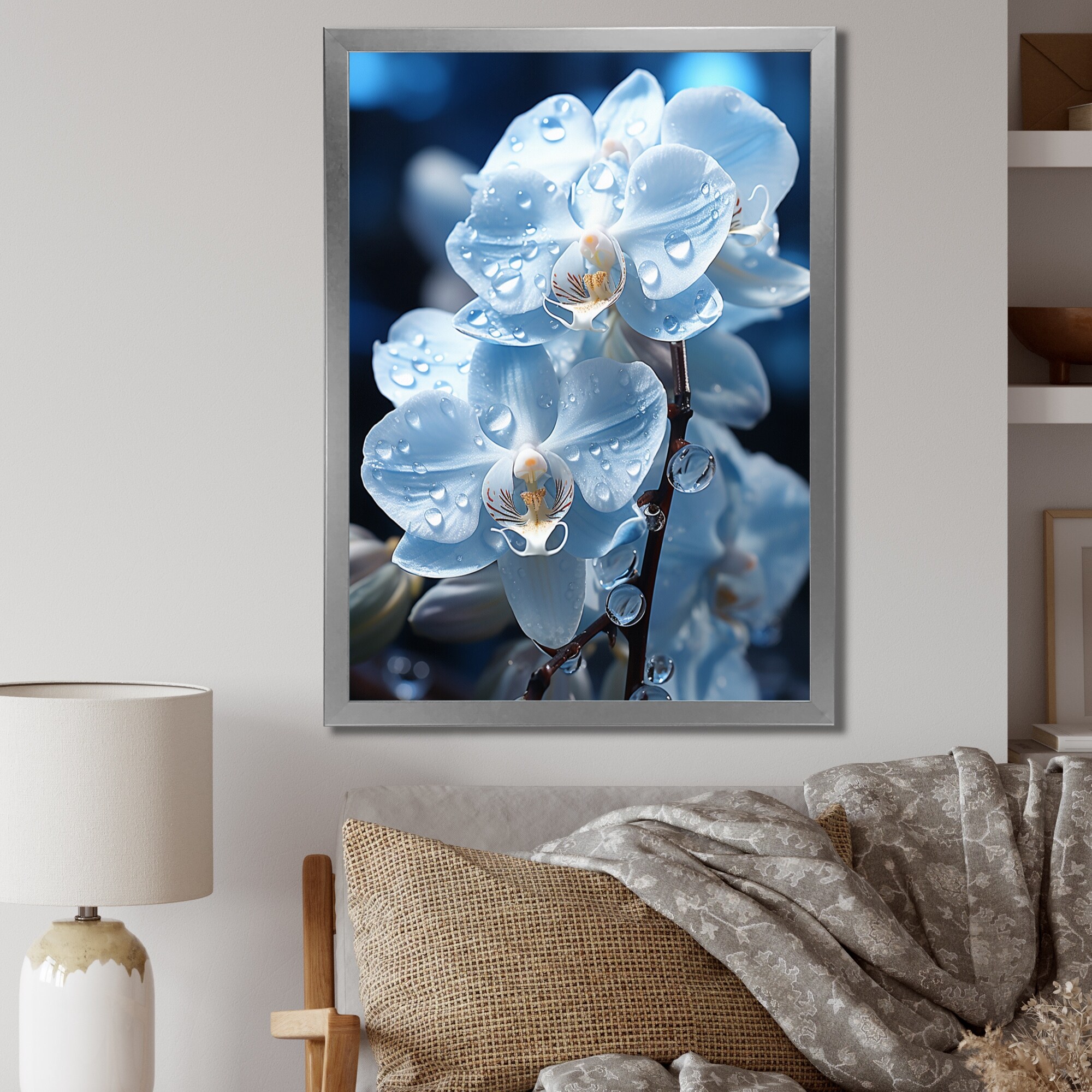 Designart "Blue White Flower Field Pearlescent Orchids" Orchids Framed Wall Decor