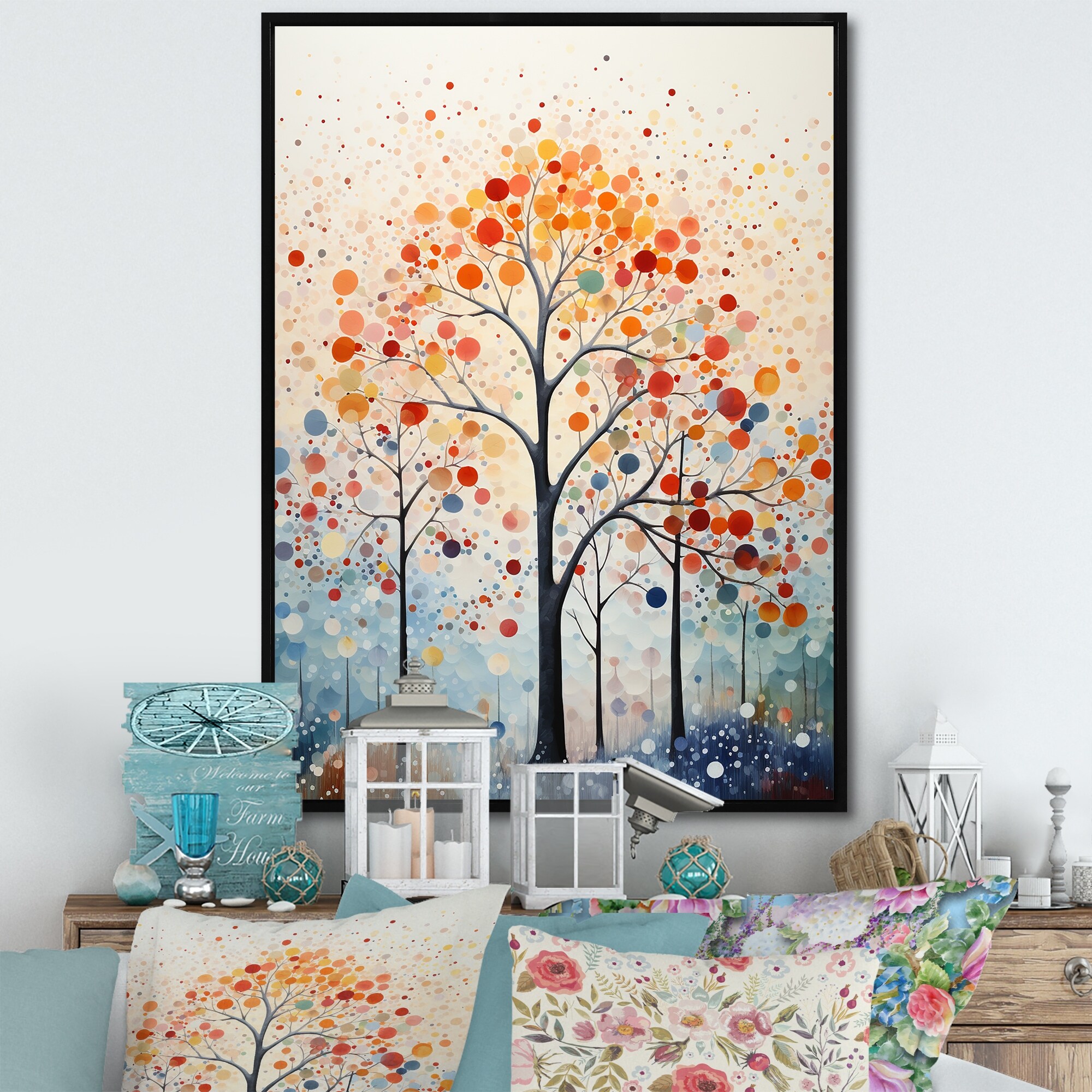 Designart "Pink And Blue Trees Field Pointillism II" Landscape Trees Framed Canvas Art Print