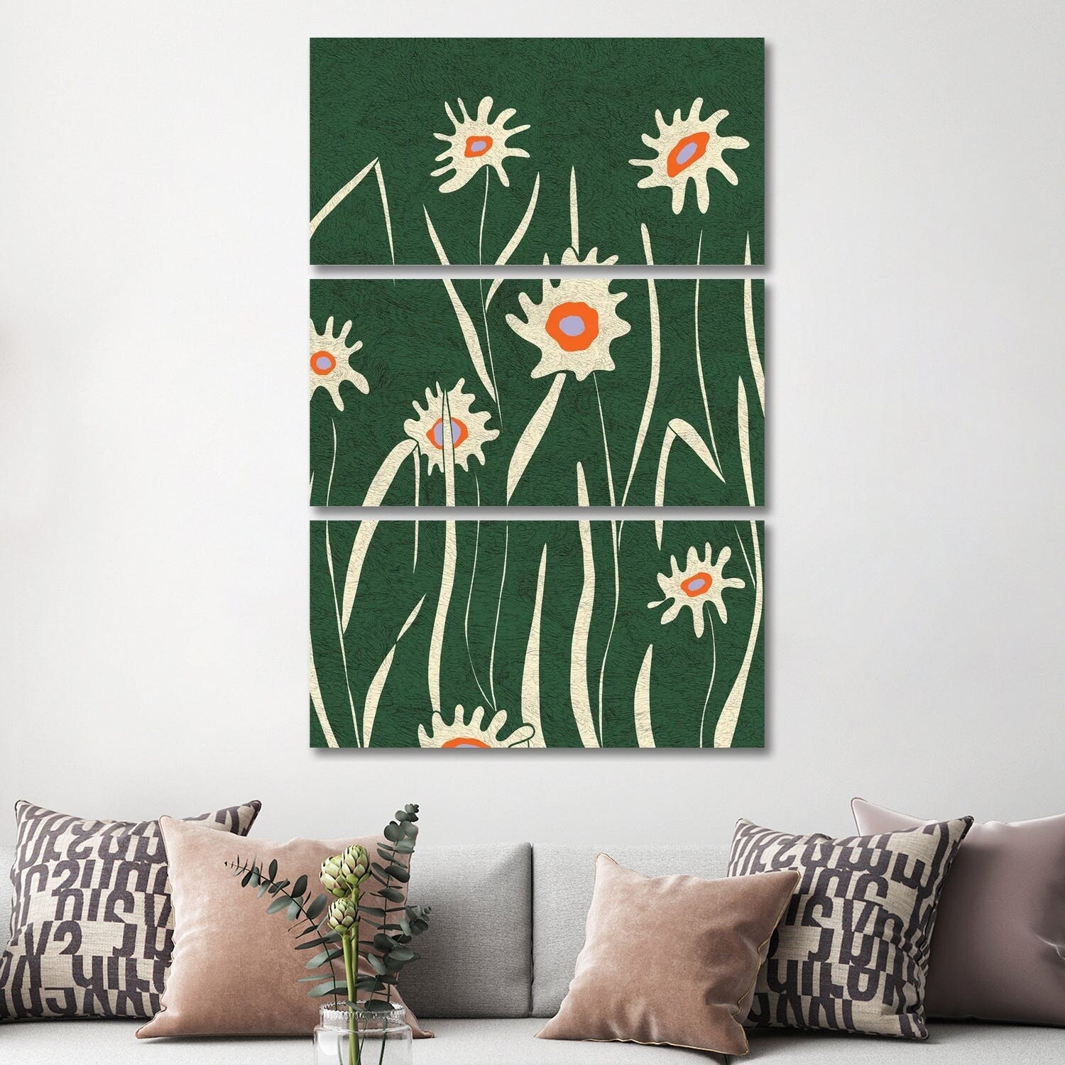 iCanvas "Green Flower Field" by Flatowl 3-Piece Wall Art Set