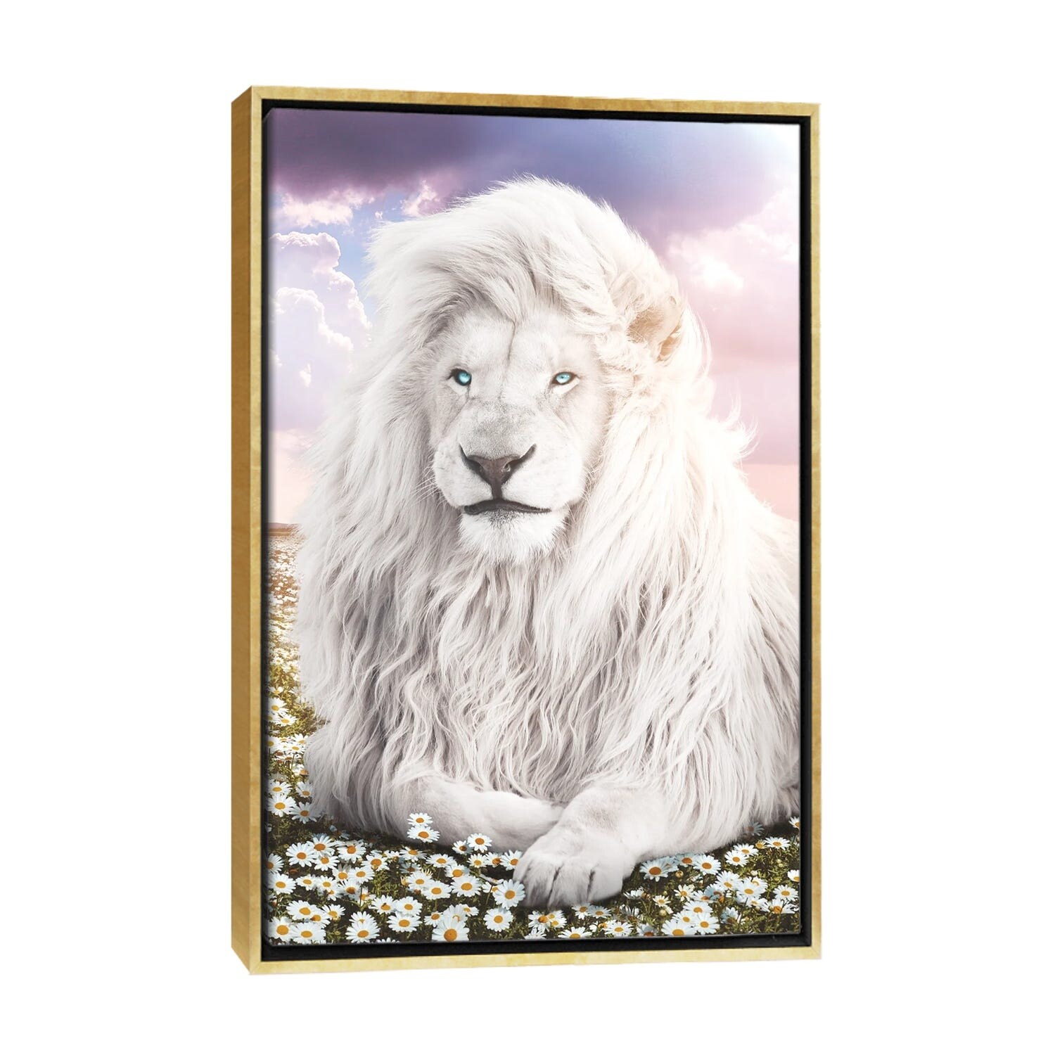 iCanvas "White Lion in Field of Flowers" by Ruvim Noga Framed Canvas Print