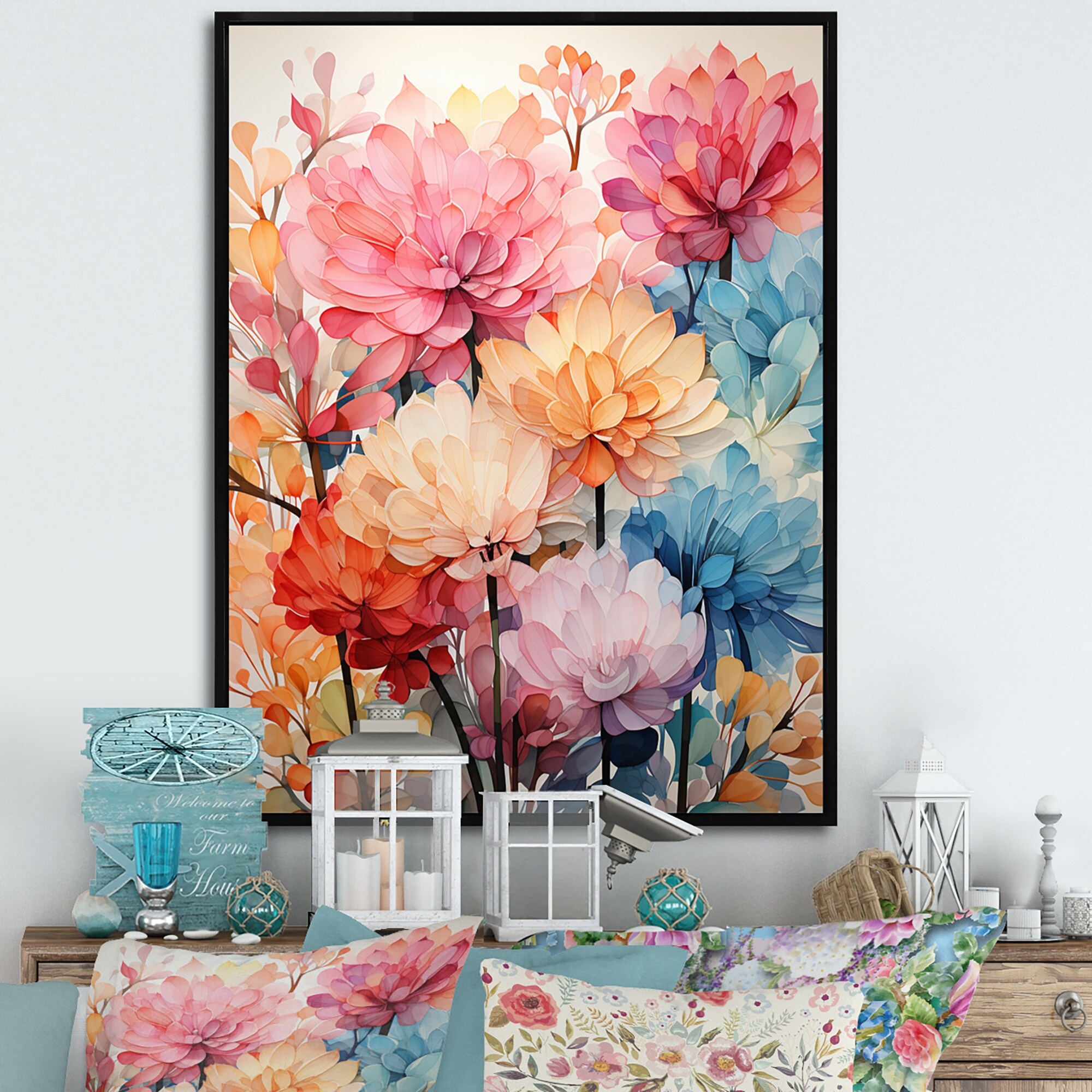 Designart "Multicolored Ferns Field I" Ferns Framed Canvas Art Print