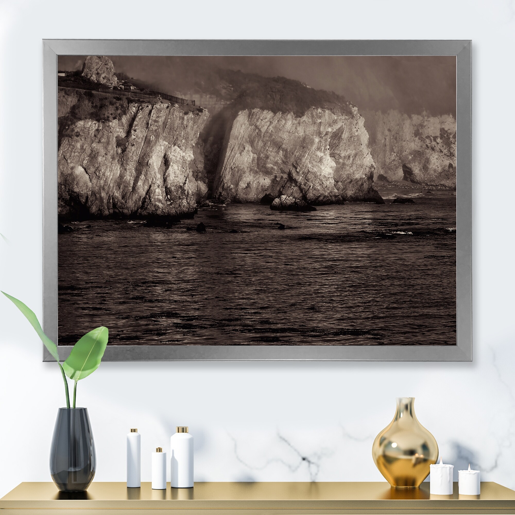 Designart "Gold Cliffs in the Fog" Modern Framed Art Print
