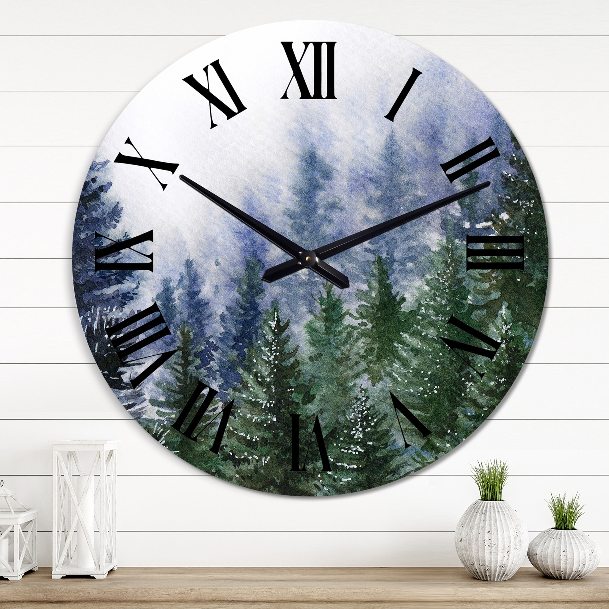 Designart 'Nature Forest in Fog Scene' Country wall clock