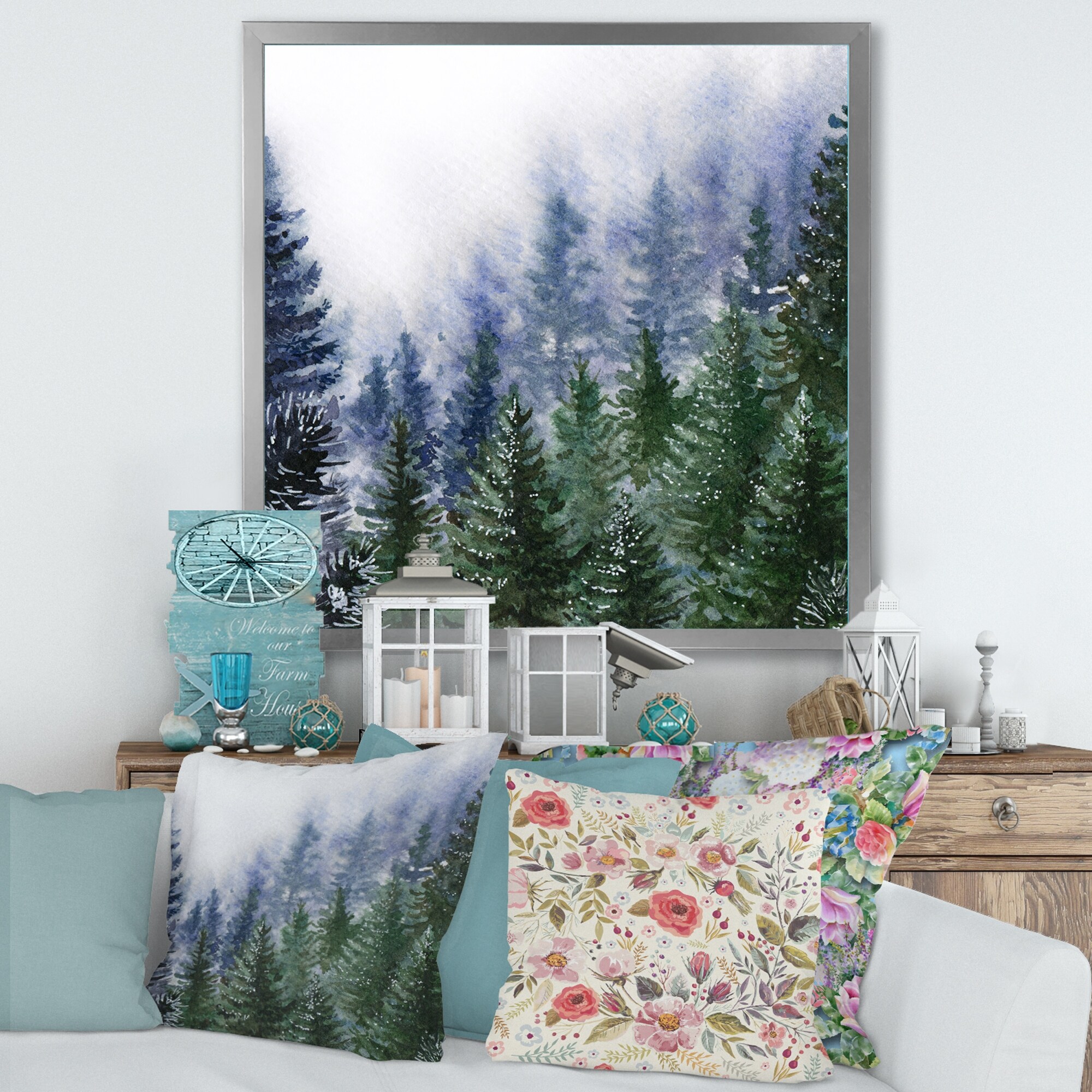 Designart "Nature Forest in Fog Scene" Country Framed Art Set of 3 - 4 Colors of Frames