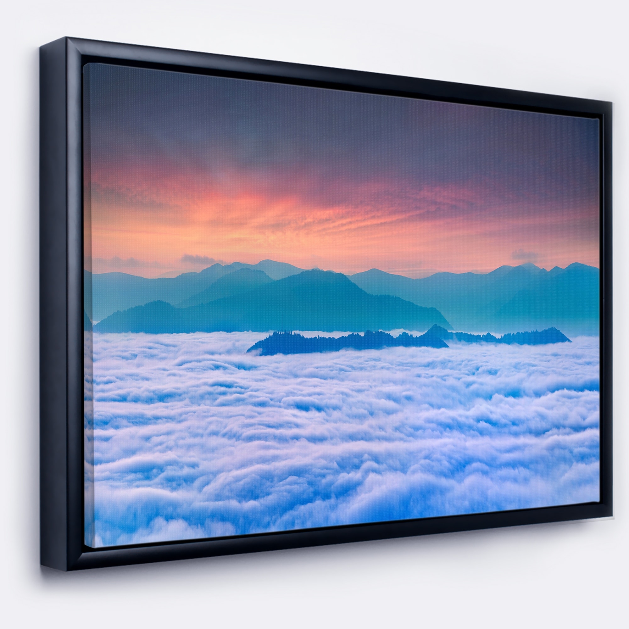 Designart "Sea of White Fog and Mountains" Landscape Photography Framed Canvas Print