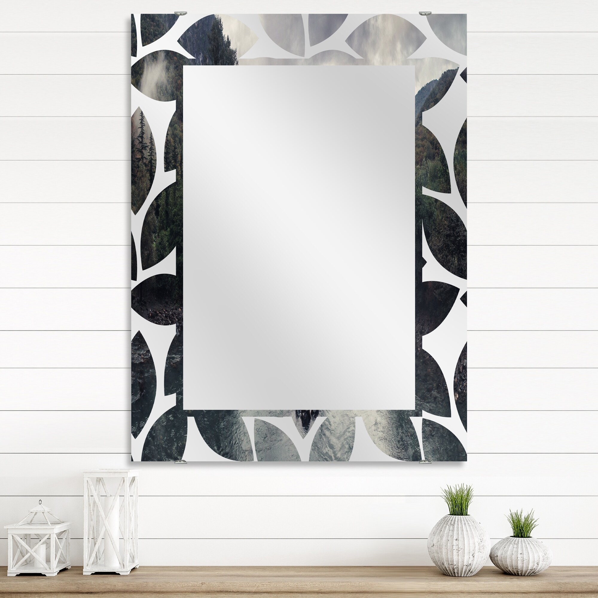 Designart 'Mountain River with Fog and Rain' Sea & Shore Printed Wall Mirror