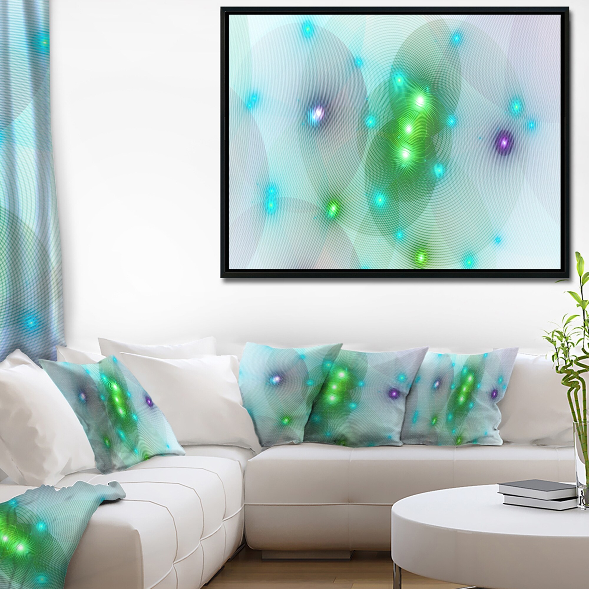 Designart "Green Fractal Lights in Fog" Abstract Wall Art Framed Canvas