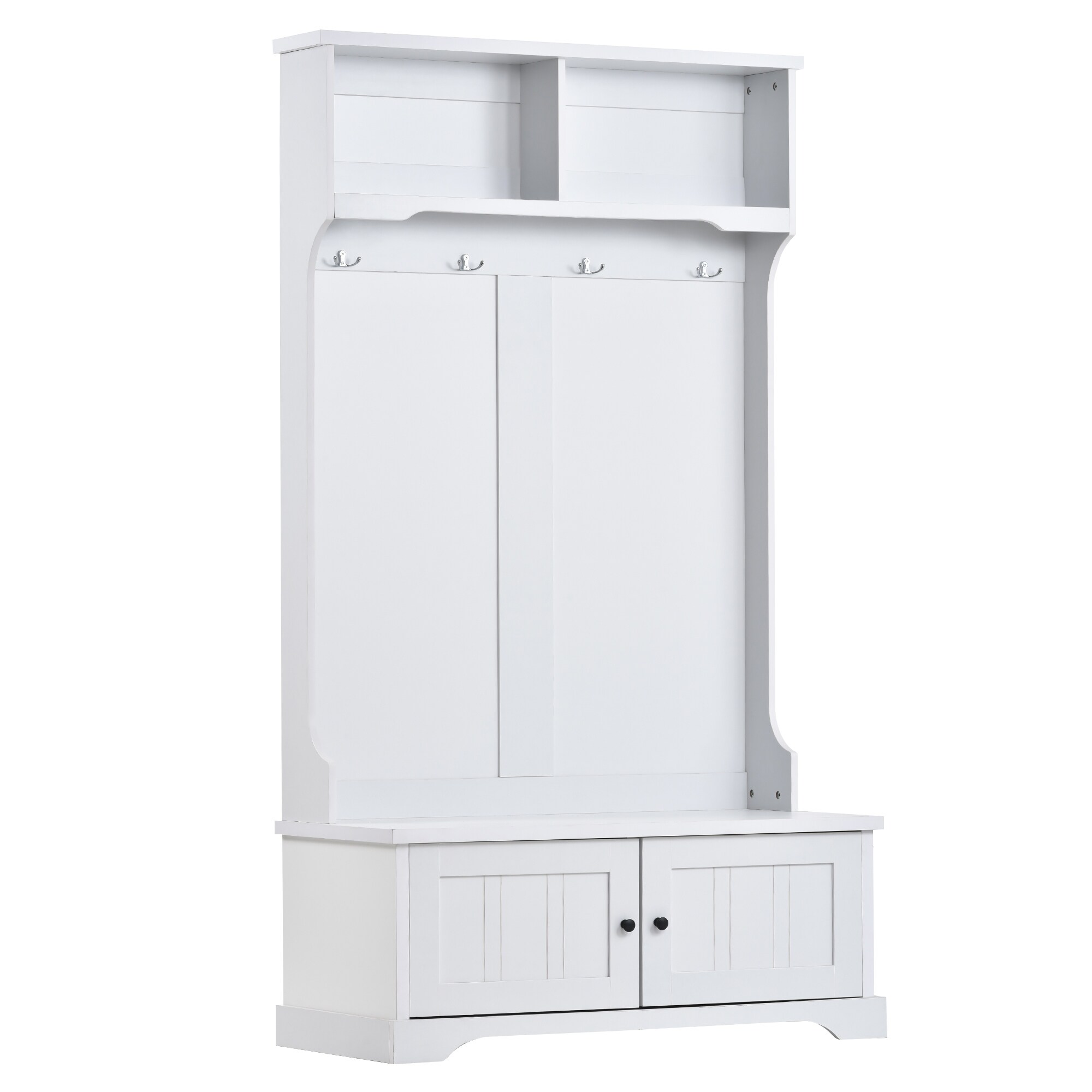 Hall Tree Entryway Bench with Shelves Cabinet and Four Hooks