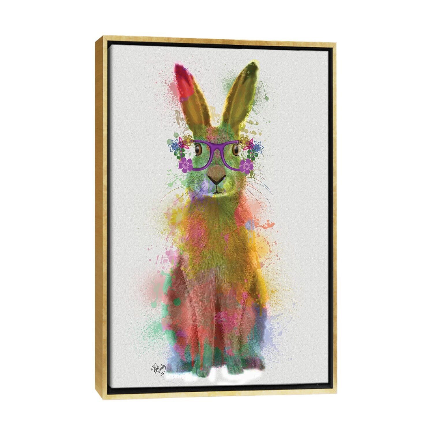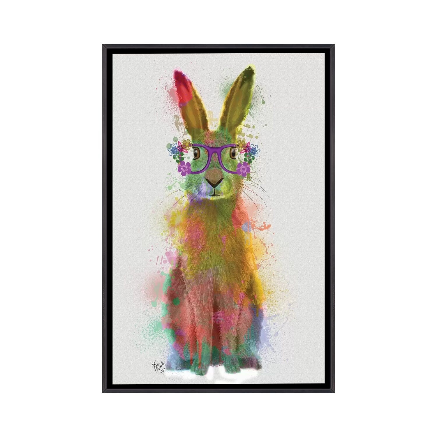 iCanvas "Rainbow Splash Ra3bit I" by Fab Funky Framed