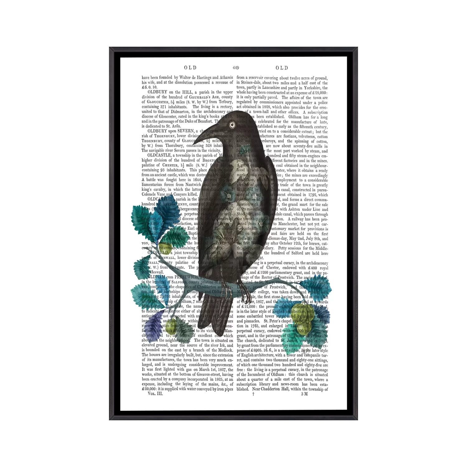iCanvas "Floral Crow on Branch" by Fab Funky Framed