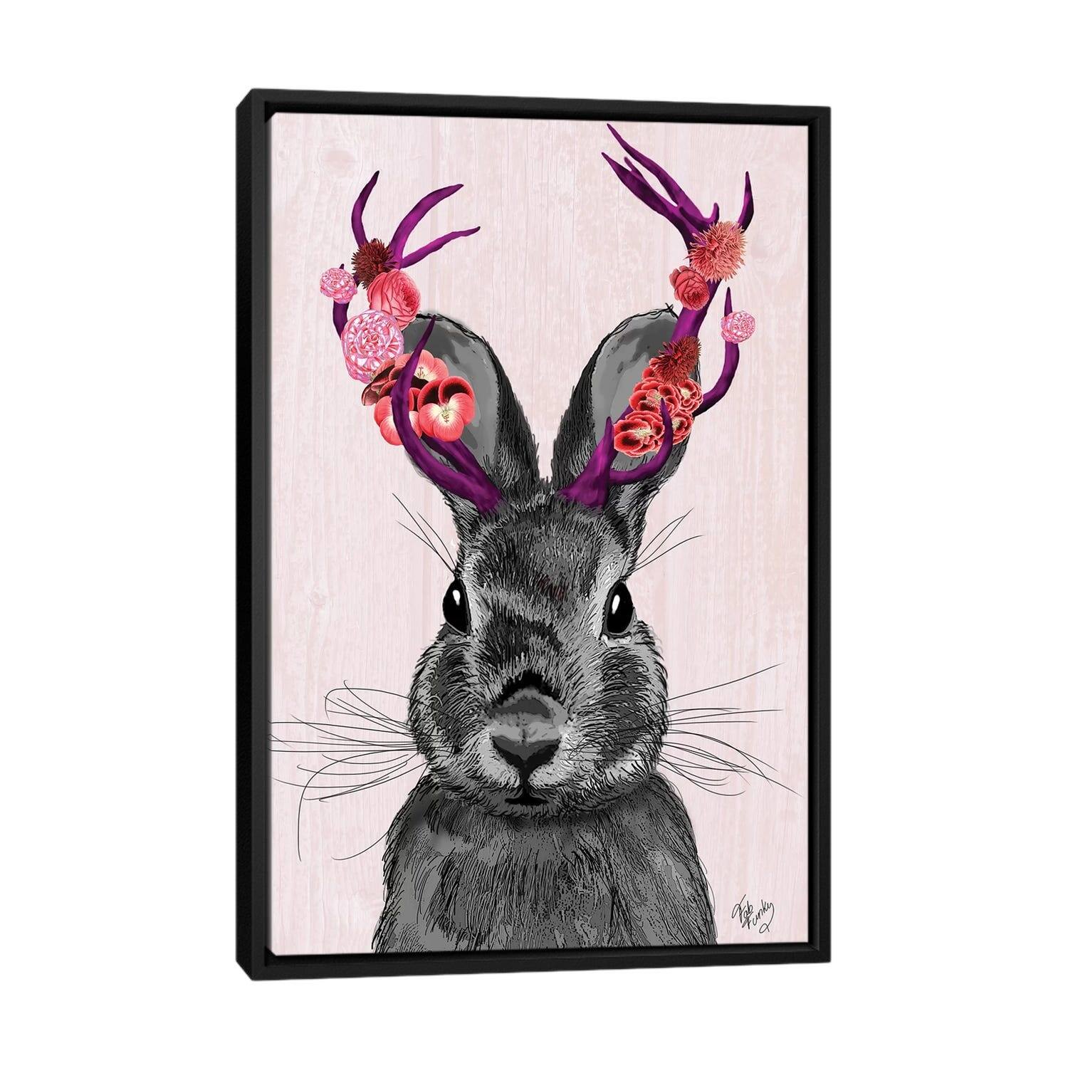 iCanvas "Jackalope With Pink Antlers" by Fab Funky Framed